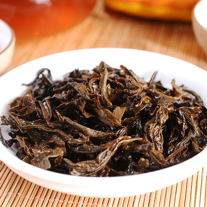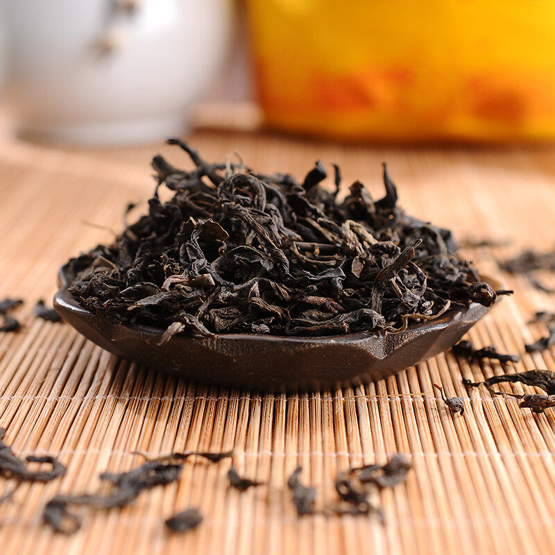 This tea is clean and smooth with an light earthy and smokey body. The flavor of this Tian Jian is very nuanced and unlike anything else we have ever tasted. On first sip it has a clear, slightly resinous pine forest aroma and flavor. Subsequent drinking reveals a taste of dark red cherries (like Morello) and cherry stones and a slight suspicion of cinnamon & star anise. All of this is carried on an undercurrent on a base of syrupy rock sugar. Unlike shou Pu-erh, Tian Jian is only lightly fermented so it has very little fermented taste – in fact, with eyes closed, we think that some Tian Jian smells reminiscent of some fresh, clean and subtle sheng Pu-erh or certain Maocha. In fact, Tian Jian is rather sweet and mild with the extra bonus of a little pine wood smoke to complete the seduction. It will aid with digestion, promote organ health, and help lower cholesterol and blood lipid levels.