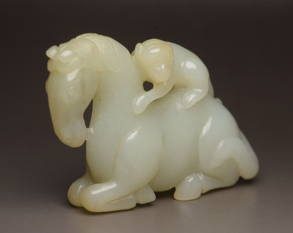 Top Chinese Natural Hetian Jade Carving Horse Monkey Statue Exquisite Figurines
