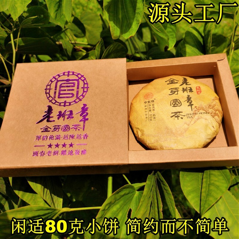 Top Golden Bud Ripe Pu'er Tea Laobanzhang Palace Pu'er Tea Cake 80g Gift Tea