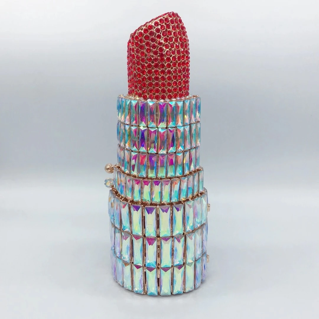 XIYUAN White Gold Rhinestone Clutch Bag Best Quality Women’s Red Diamond Wedding Bridal Handbags Elegant Lipstick Shape Case BagCNY 910.67/piece