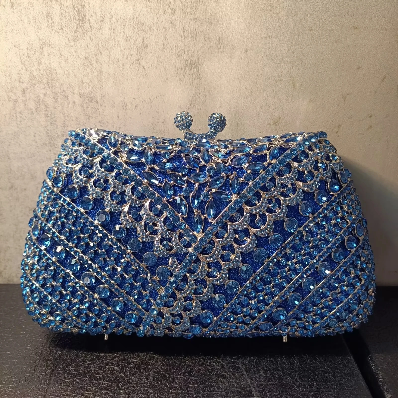 Top Selling Hollow Out Green Blue Orange Bag Woman Diamond Clutches Wedding Bridal Evening Purse Dinner Party Crystal Handbag