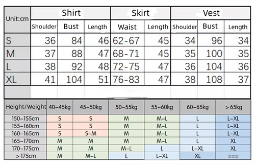 The complete set includes: hat/shirt/vest/short skirt/sleeves/bow tie/bow tie accessories