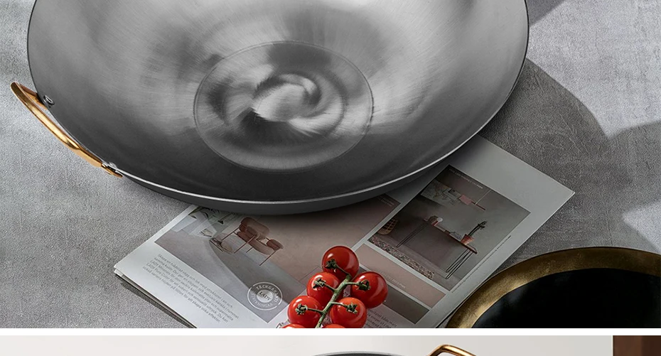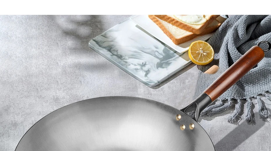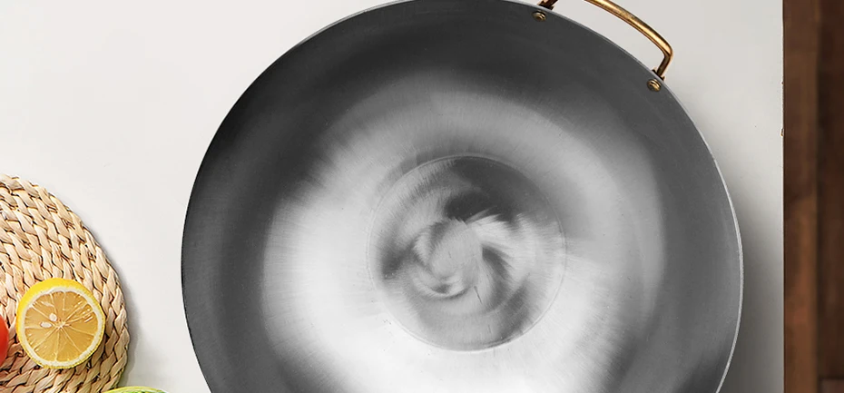 2.Dense bottom, easy to clean and use less oil:The inner wall of the pot is faintly stained with mottled hammer marks, but it is not touchable. After the forging by the craftsman, the density of iron is high, and the penetration of oil is natural. The surface is smooth and easier to clean.