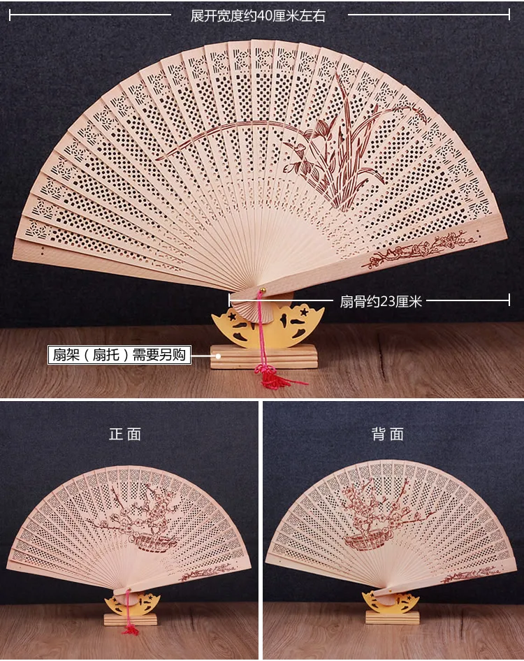 Chinoiserie Suzhou women's rosewood fan sandalwood fan antique folding fan sandalwood classic women's personal cheongsam ancient fan hanfu