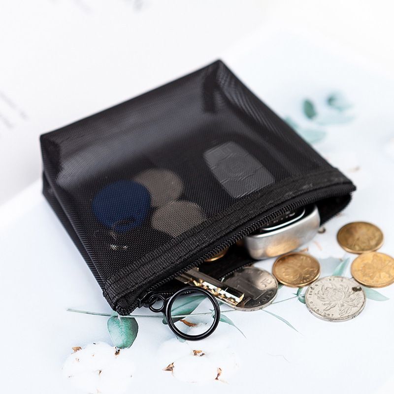 Transparent Black Mesh Cosmetic Bag Travel Makeup Pouch Zipper Toiletry Storage