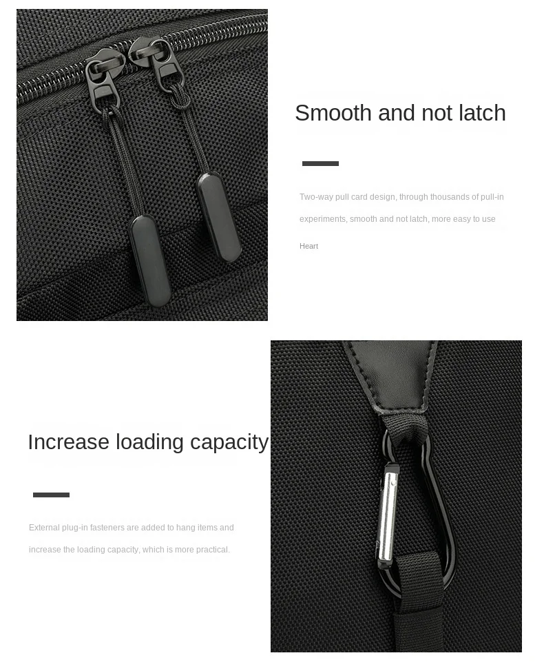 The internal structure of the bag: zipper pocket, mobile phone pocket, document pocket, interlayer zipper pocket, computer pocket, camera pocket