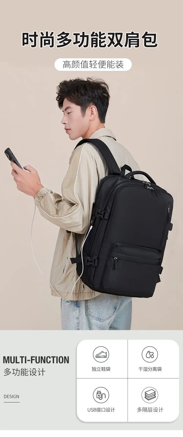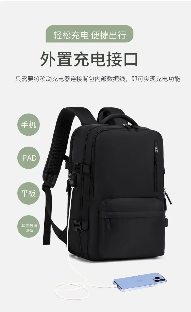 Oxford Backpack for Women USB Charging Waterproof Men's Back Pack 15 Inches Laptop Bag 30L Big Capacity Outdoor Travel Shoes Bag