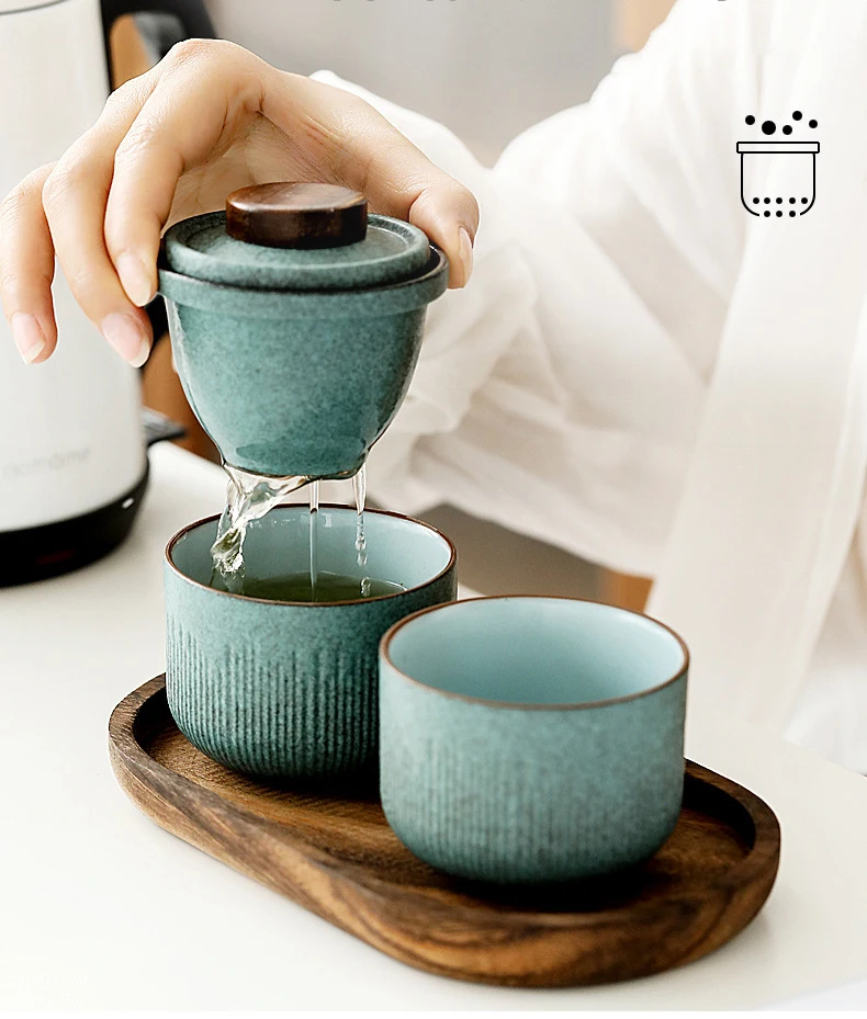 Travel Tea Set Outdoor Vehicle Quick Cup One Pot Two Cup Mini Carrying Case Filter Tea Cup Shockproof Fulfillment Organizer