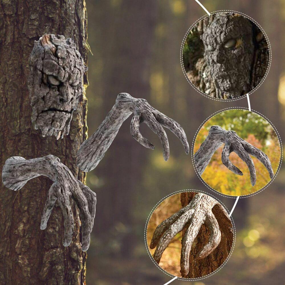 Feature: Creepy face and arm tree decoration. Carved into realistic tree bark. Durable resin, suitable for four seasons display. There is a keyhole on the back, which can be put up at any time. Package includes one face and two arms. Specification: Material: Resin size: Head: 11x6x15cm/4.33x2.36x5.91inch Hand: 11x13.5x18cm/4.33x5.31x7.09inch Hand: 10x14.5x17cm/3.94x5.71x6.69inch Weight: 900g Note: The artwork is made of resin. Please protect the exquisite artwork carefully and avoid damage from high places. Due to the different monitor and light effect, the actual color of the item might be slightly different from the color showed on the pictures.Thank you! Please allow 1-2cm measuring deviation due to manual measurement.