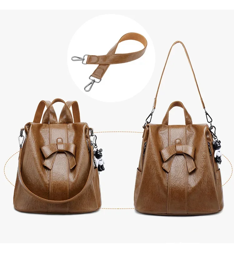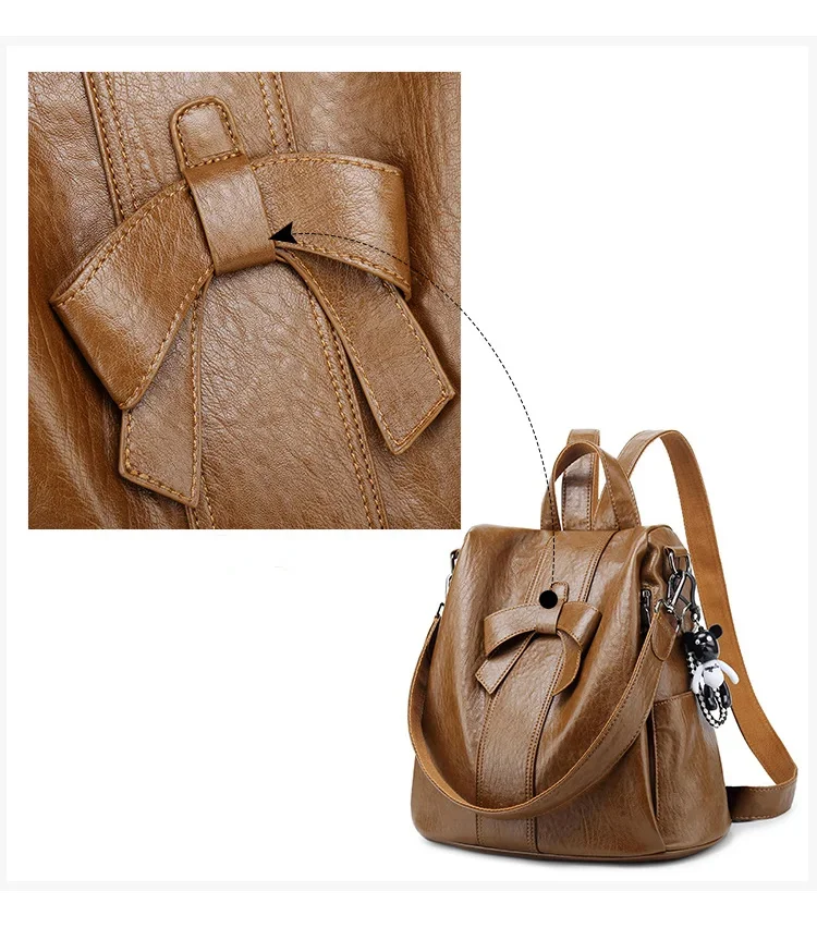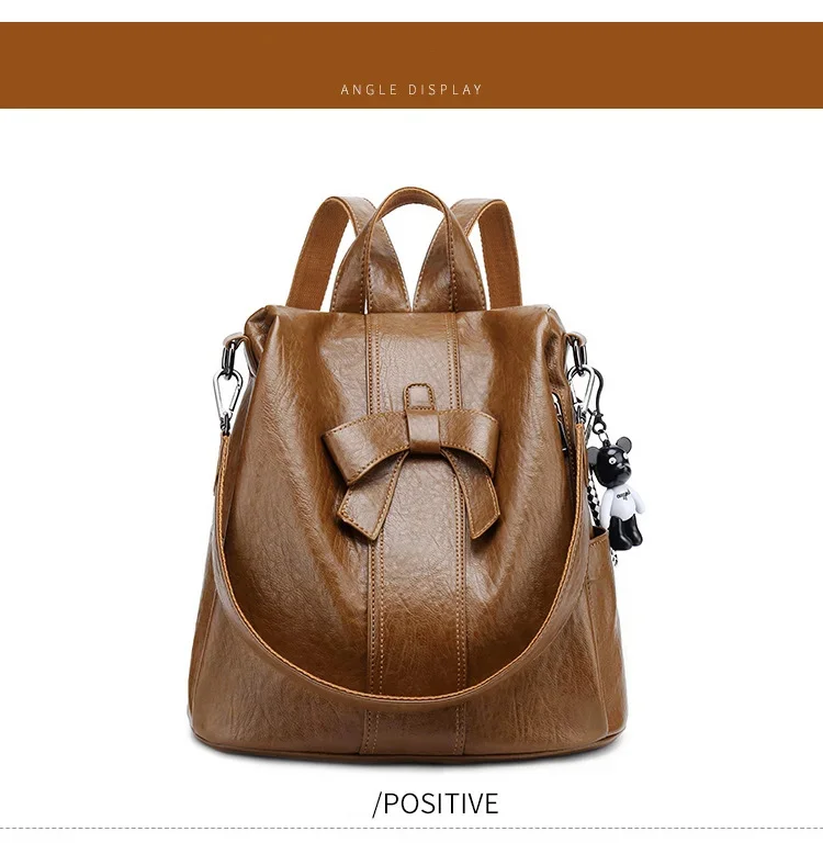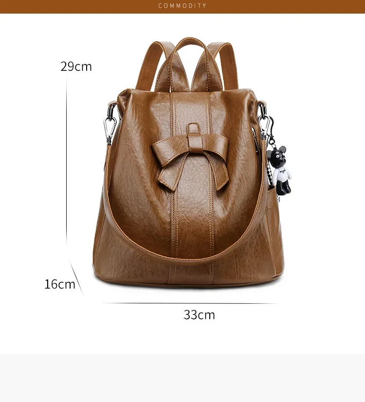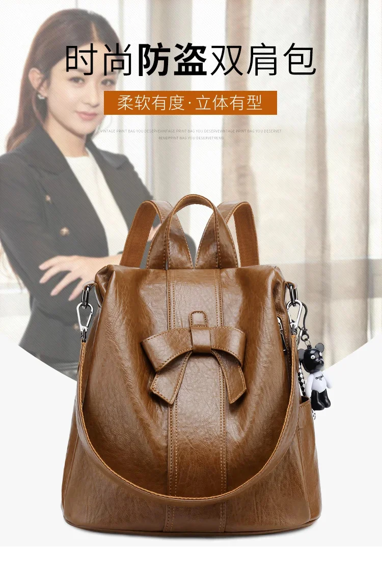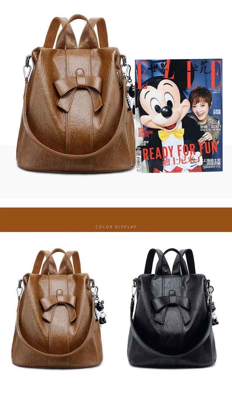 Trend Anti-theft Women's New Shoulder Korean Fashion PU Leather Multifunctional Cute Bow Backpack Travel Bag