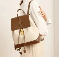 Women's Fashion Leather Shoulder Bag Popular Color Matching Youth Travel Small Backpack Anti-theft Lock Texture Female Backpack