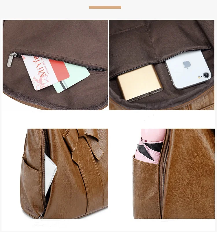 Vintage Backpack Female Pu Leather Bag Women's Backpack Fashion School Bag for Girls High Quality Leisure Shoulder Bag