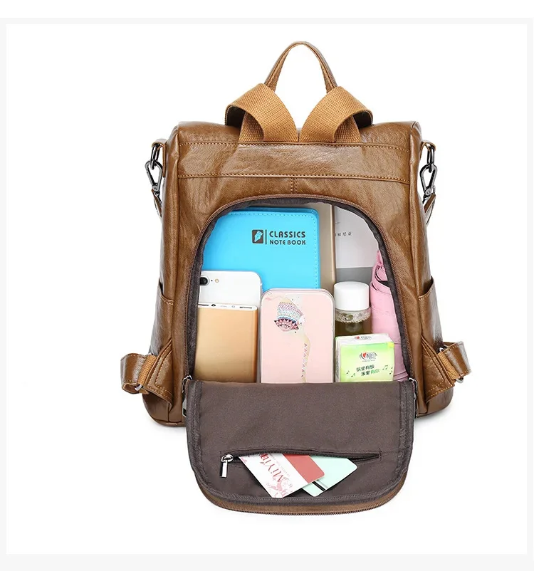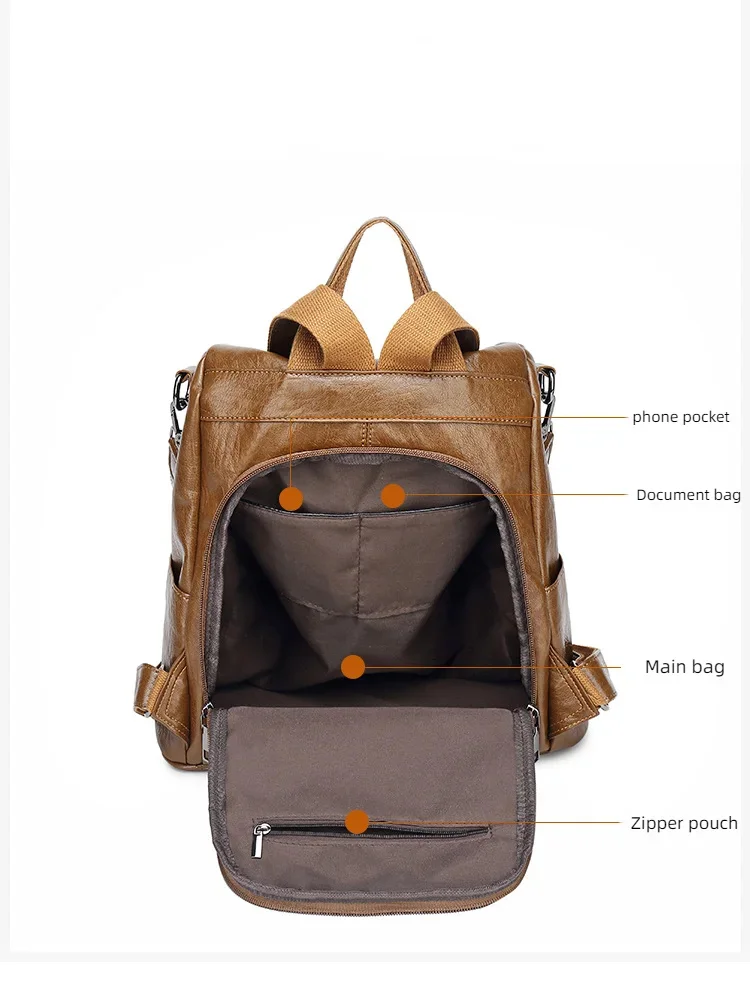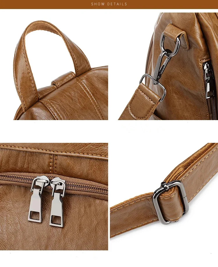 New Fashion Ladies PU Soft Leather Backpack Multifunctional Female Bag Solid Color Small Backpack Handbag Shoulder Crossbody Bag