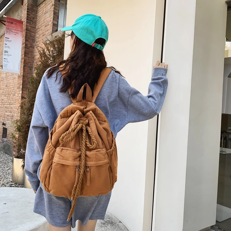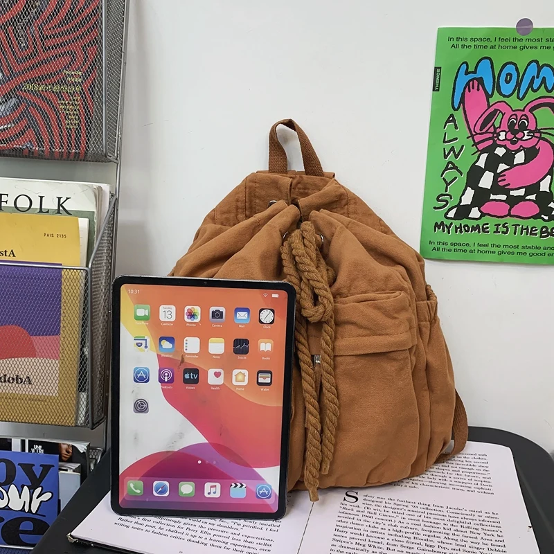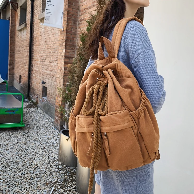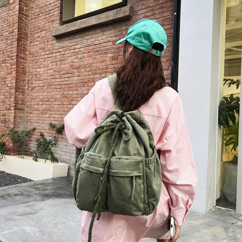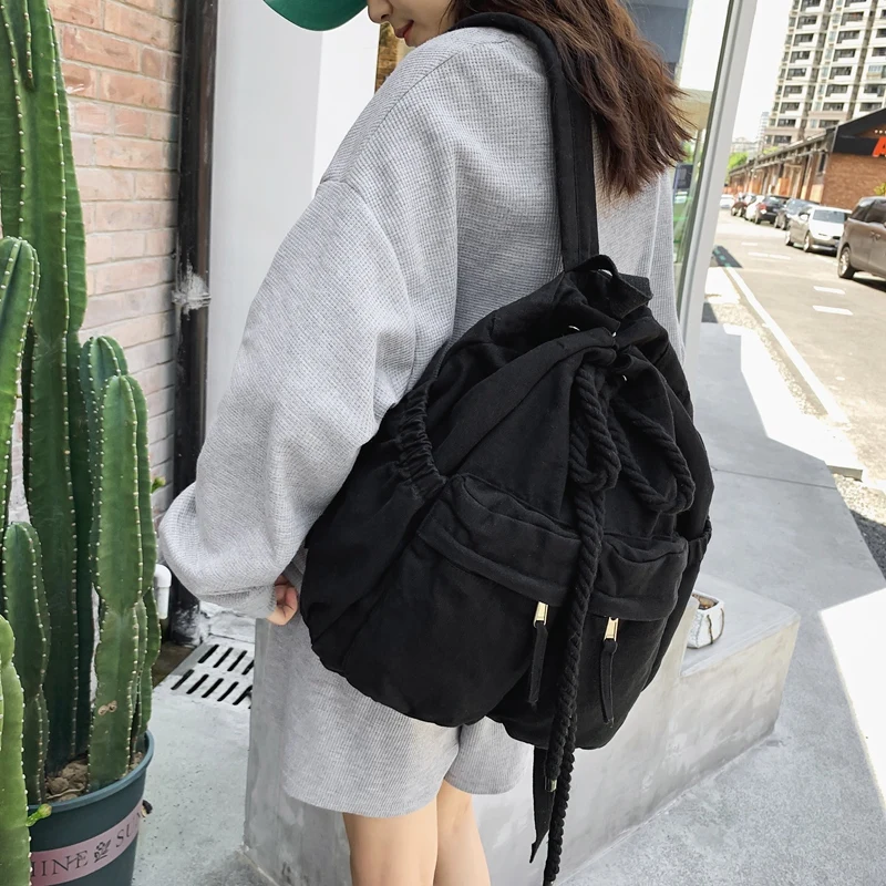 Trendy Cool Ladies Canvas Vintage Backpack Laptop Girl Retro Travel Bag Fashion Female College Student Backpack Women School Bag