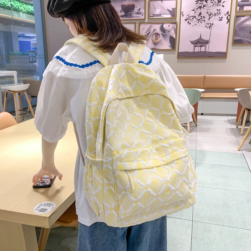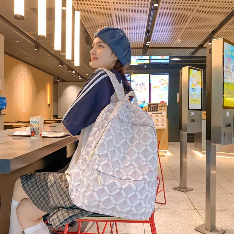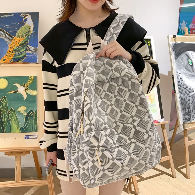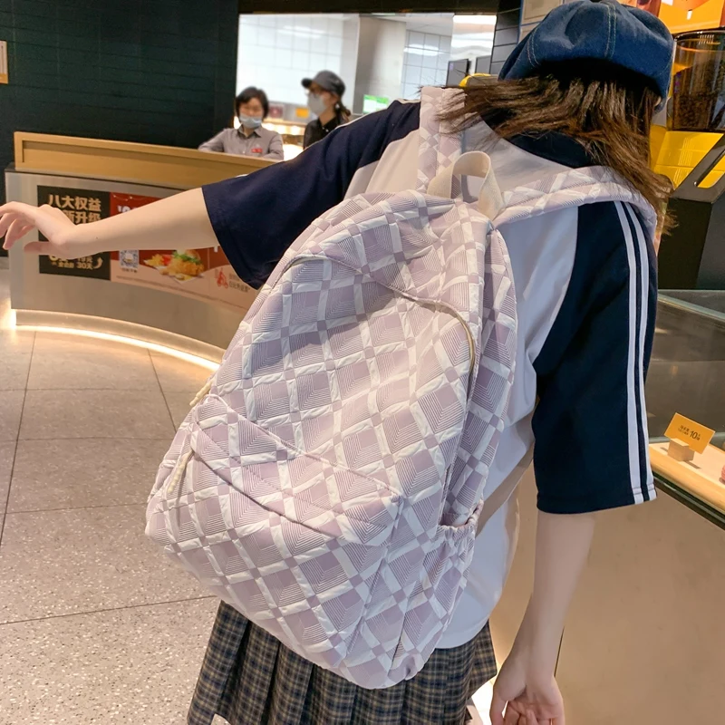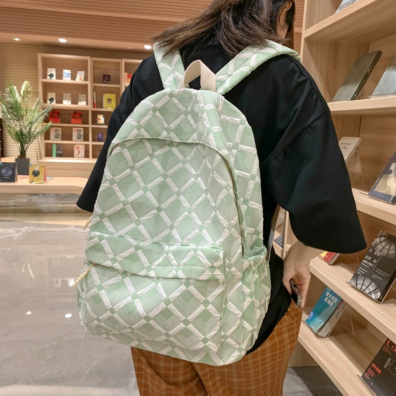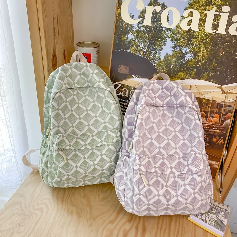 Trendy Plaid Girl Fashion Travel School Bag Kawaii Waterproof Lady Backpack Women Laptop Book Bag Female College Backpack
