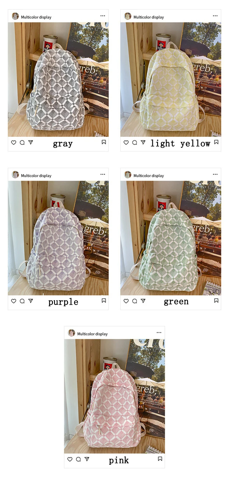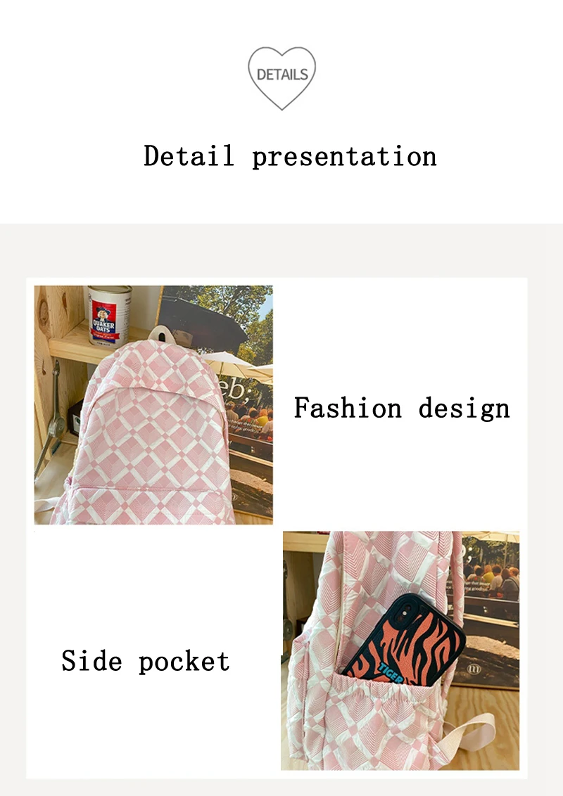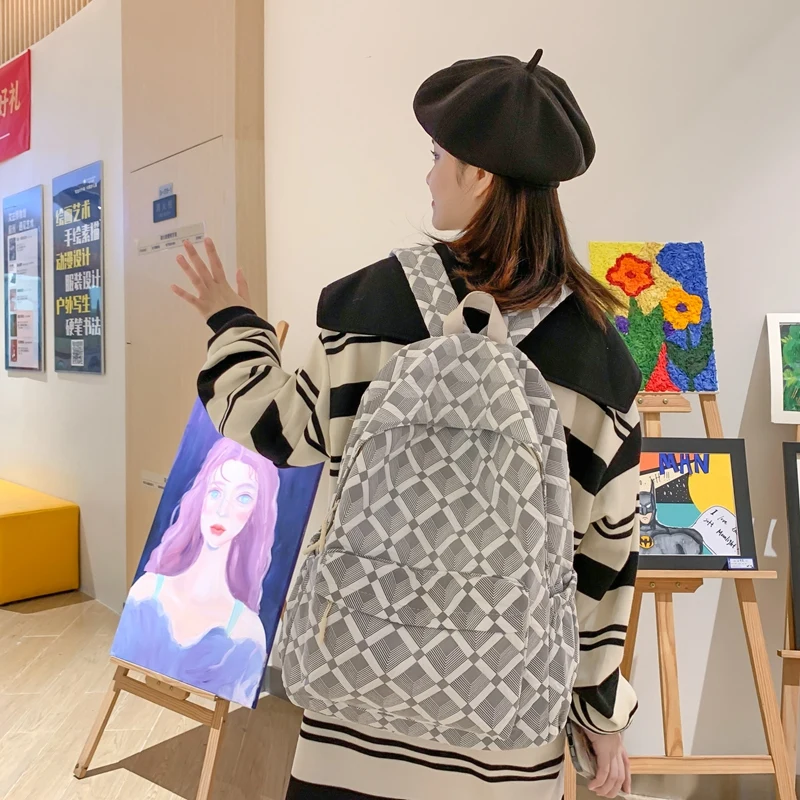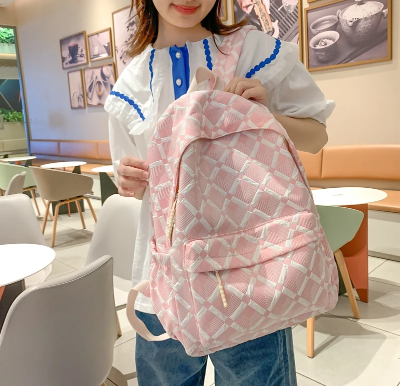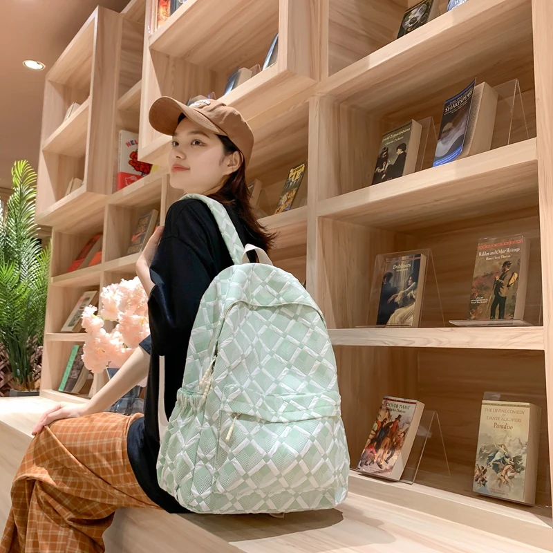 Trendy Plaid Girl Fashion Travel School Bag Kawaii Waterproof Lady Backpack Women Laptop Book Bag Female College Backpack