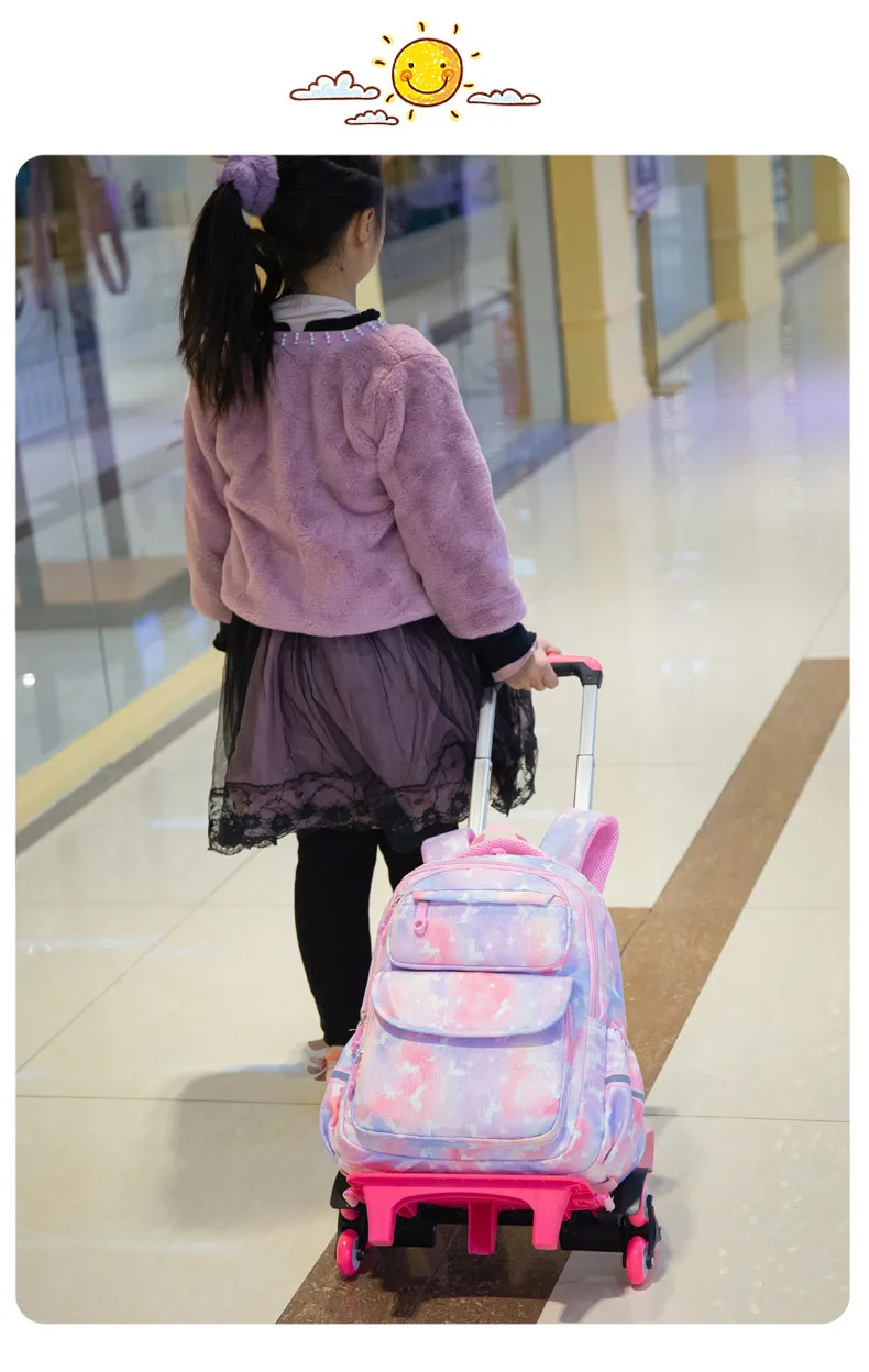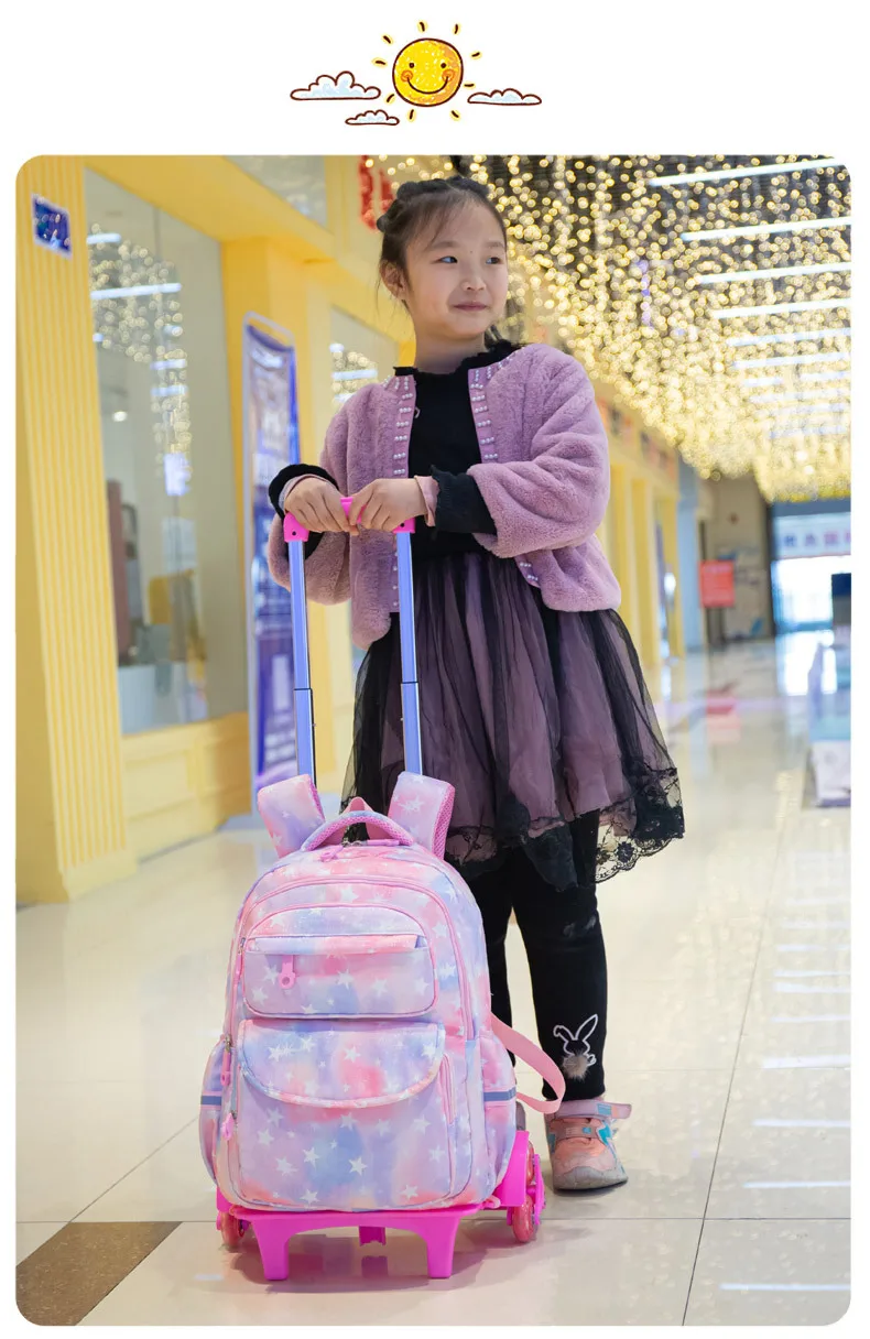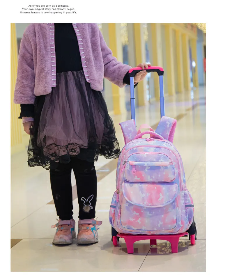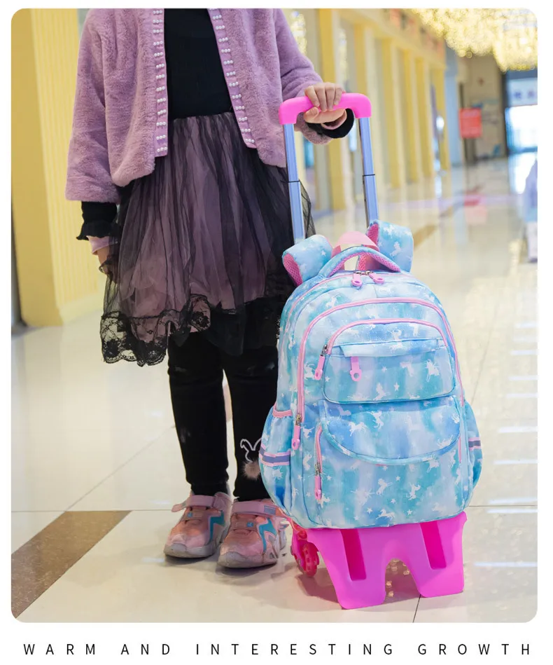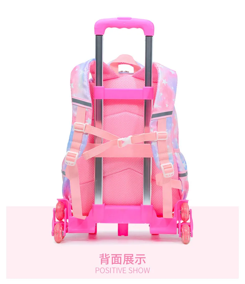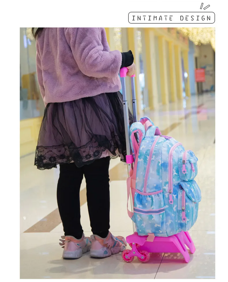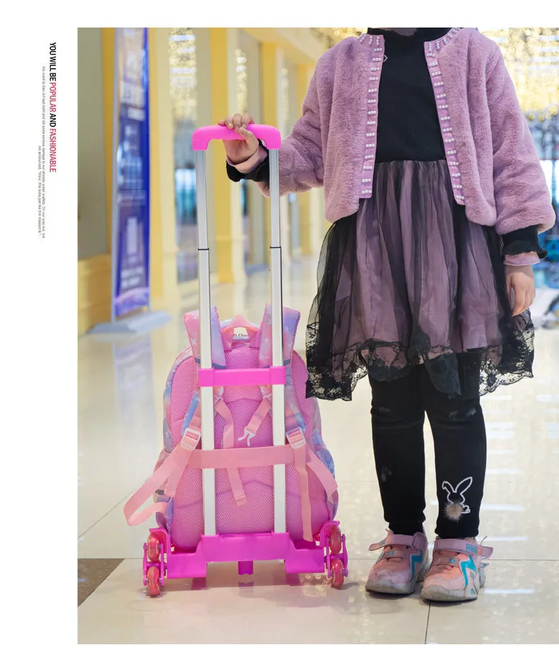 Trolley Children school bags for Girls 2/6 Wheels Detachable Backpack Kids Travel Luggage Book Bag Cartoon printing Schoolbags