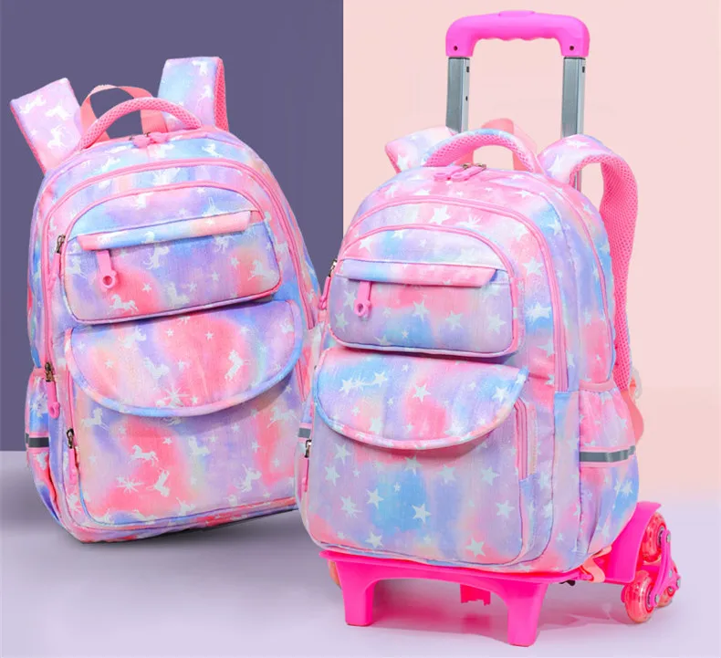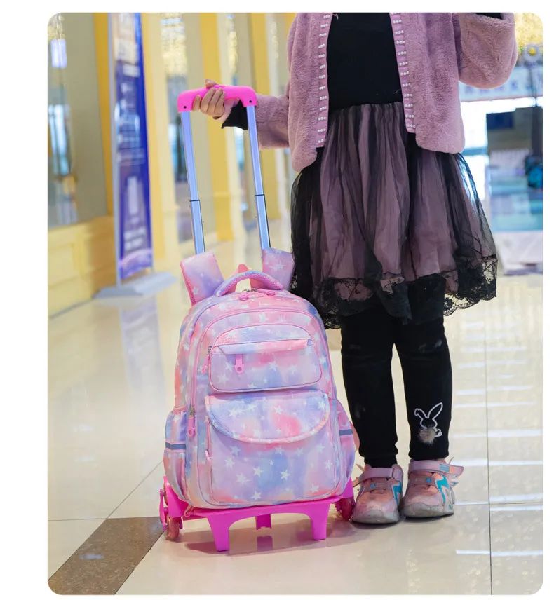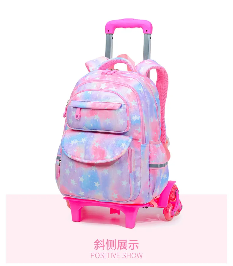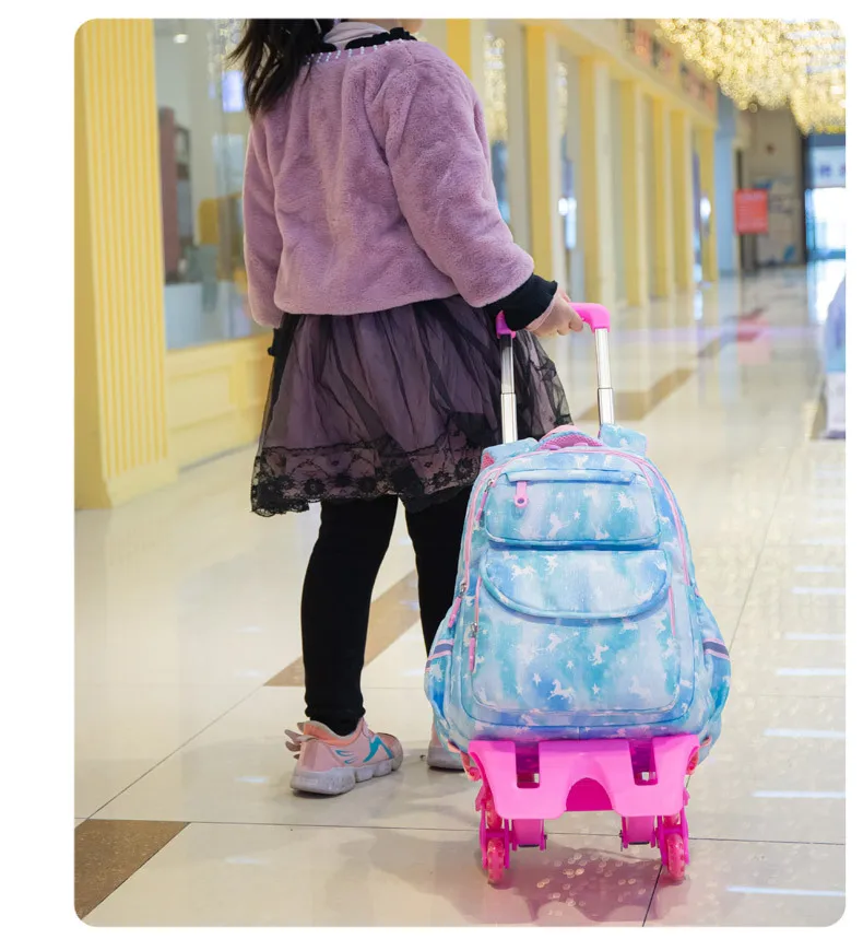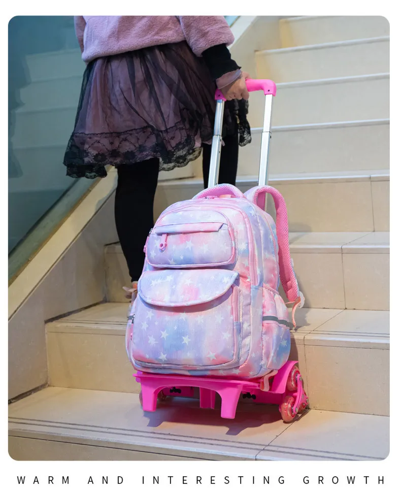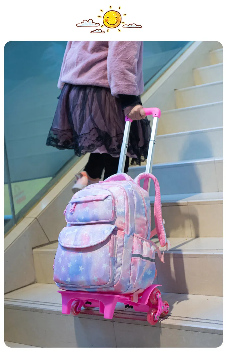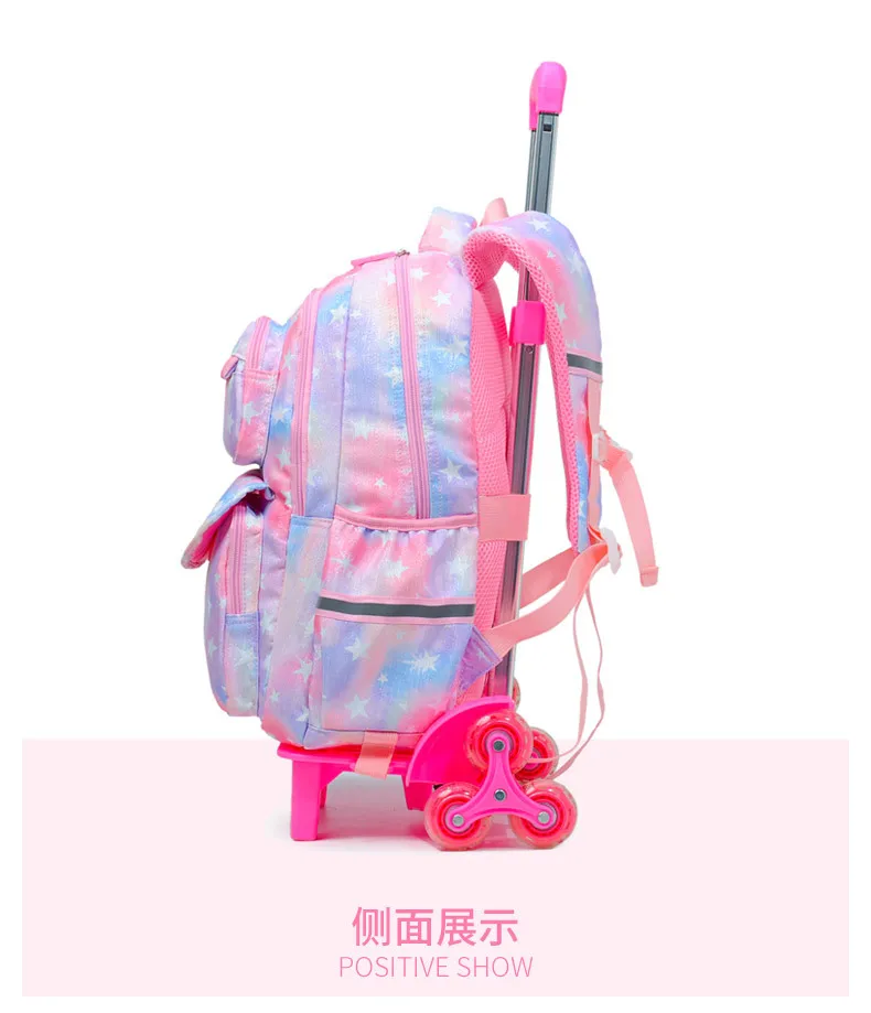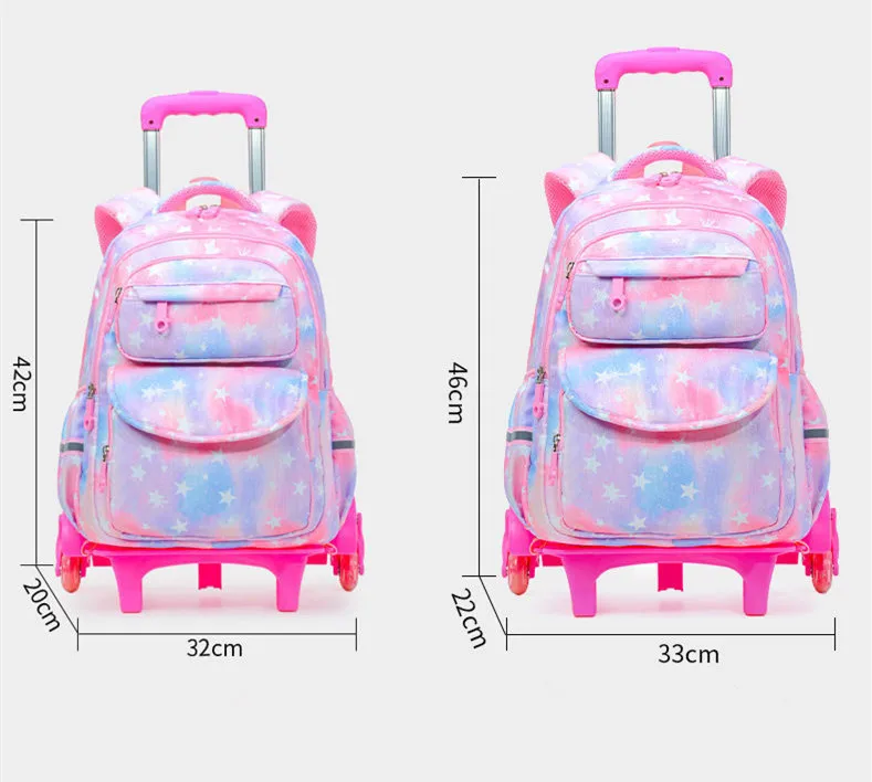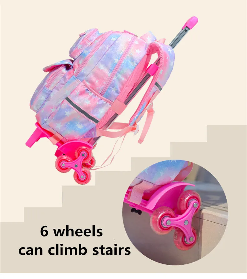 Trolley Children school bags for Girls 2/6 Wheels Detachable Backpack Kids Travel Luggage Book Bag Cartoon printing Schoolbags