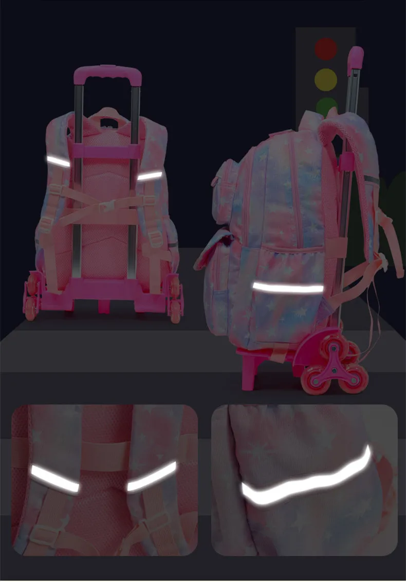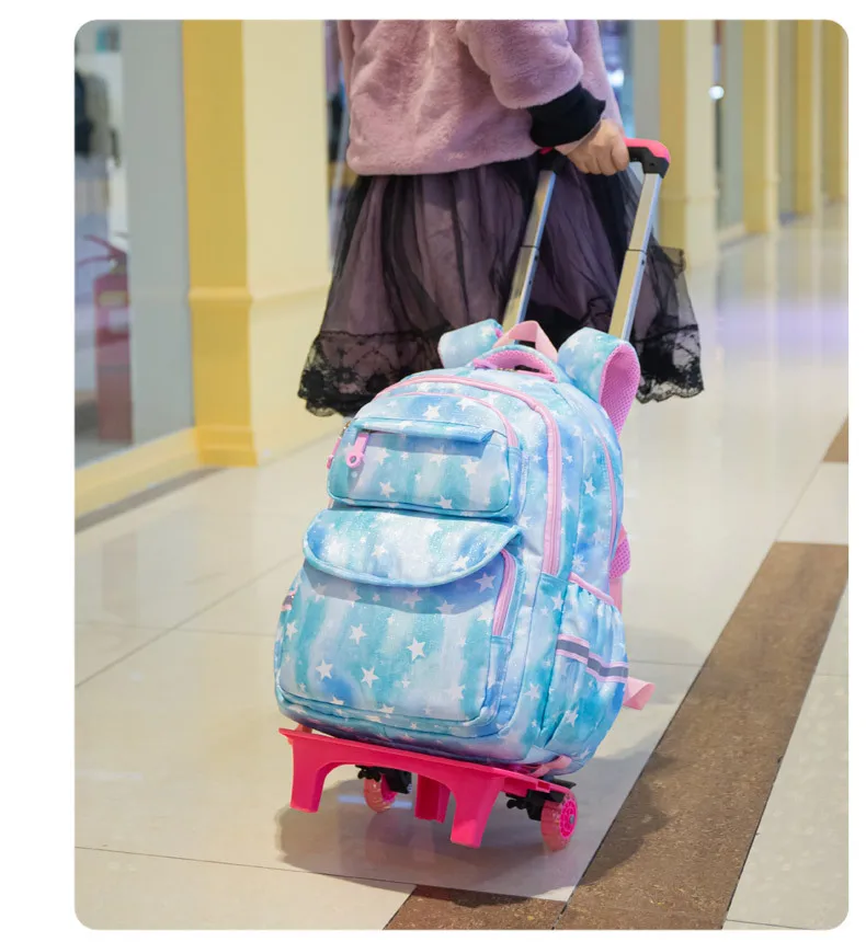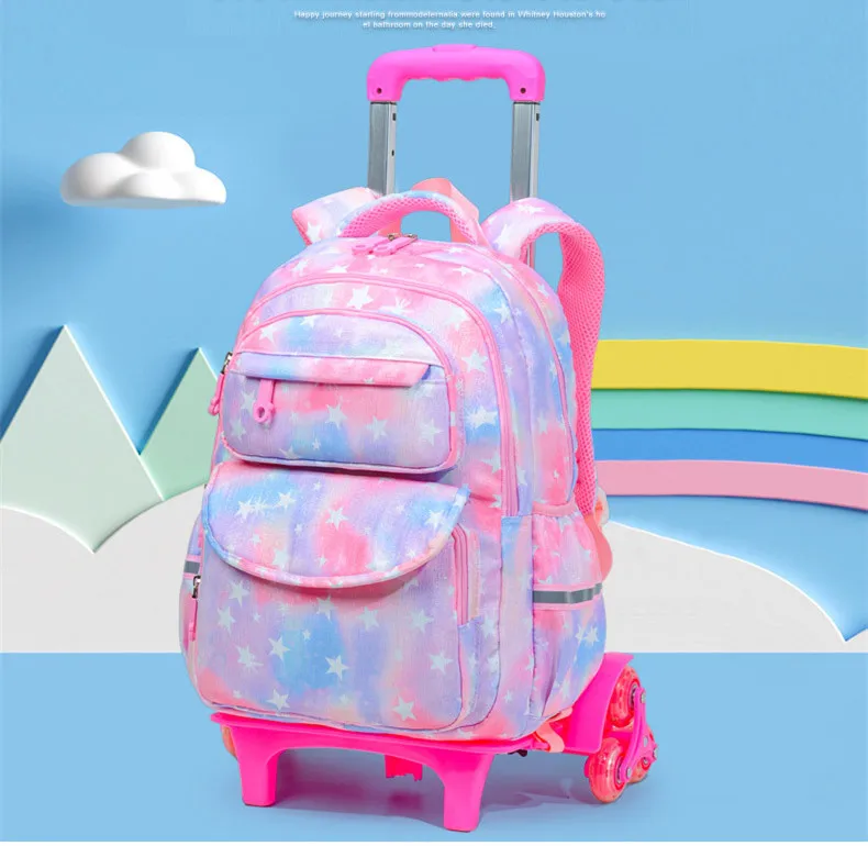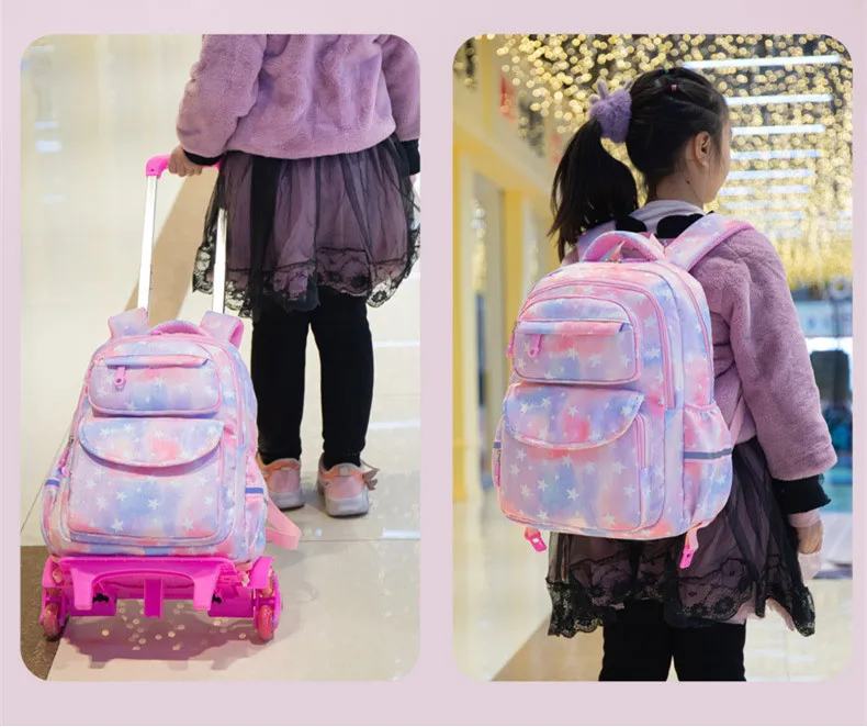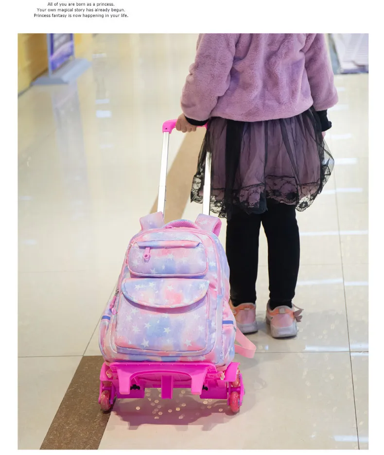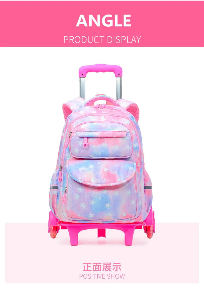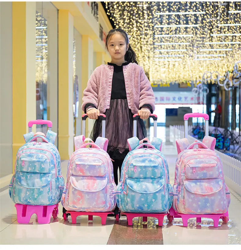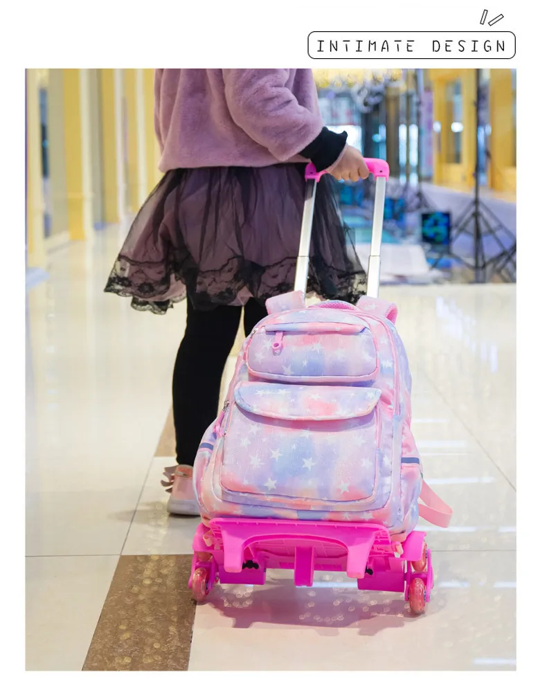 Trolley Children school bags for Girls 2/6 Wheels Detachable Backpack Kids Travel Luggage Book Bag Cartoon printing Schoolbags