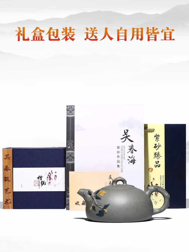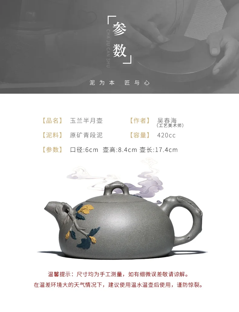 True art yixing recommended pure handwork teapot famous tea undressed ore green mud yulan half a pot