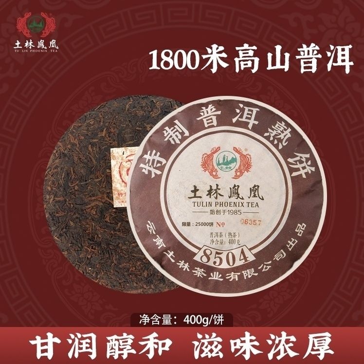 TuLin Phoenix Chinese Pu Er Tea Ripe 8504 (701) Gongting Shu Puer Cake 400g