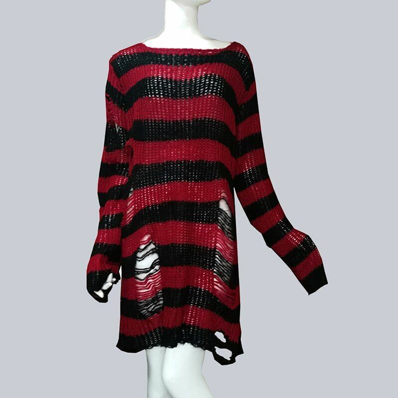 Unisex Sweater Plus Size Punk Long Dress Hollow Hole Broken Jumper Loose Thin ONE SIZE : Bust 110 cm ; Length 79 cm.