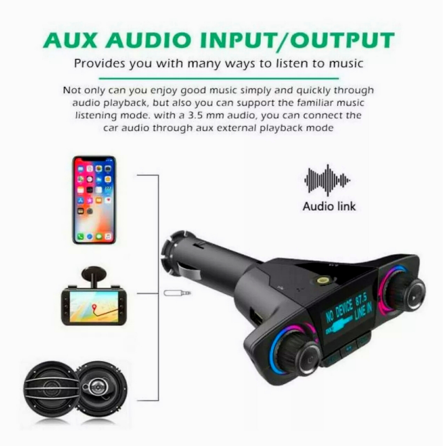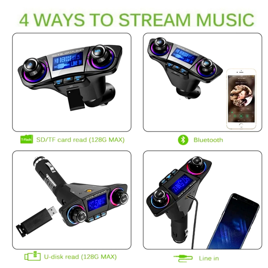 Cargador USB Transmisor Bluetooth Reproductor MP3 Manos Libres Adaptador Radio