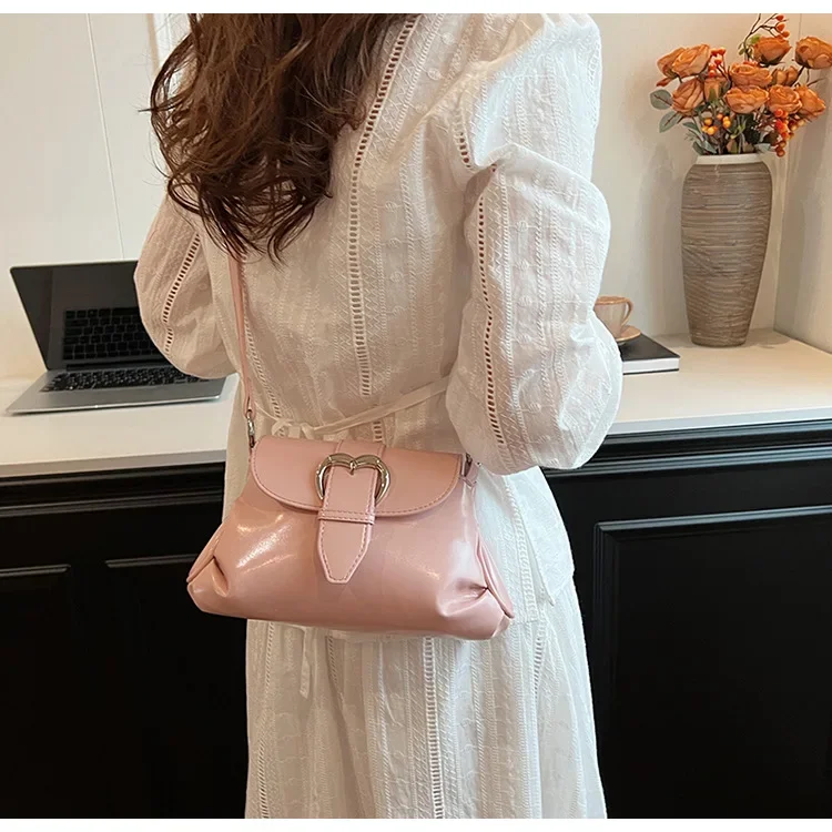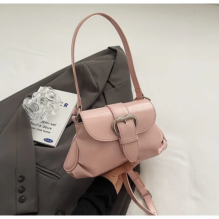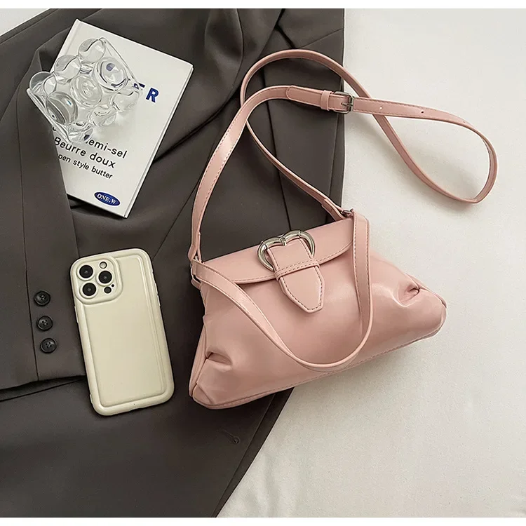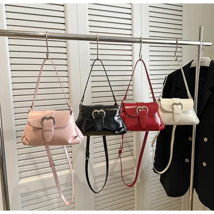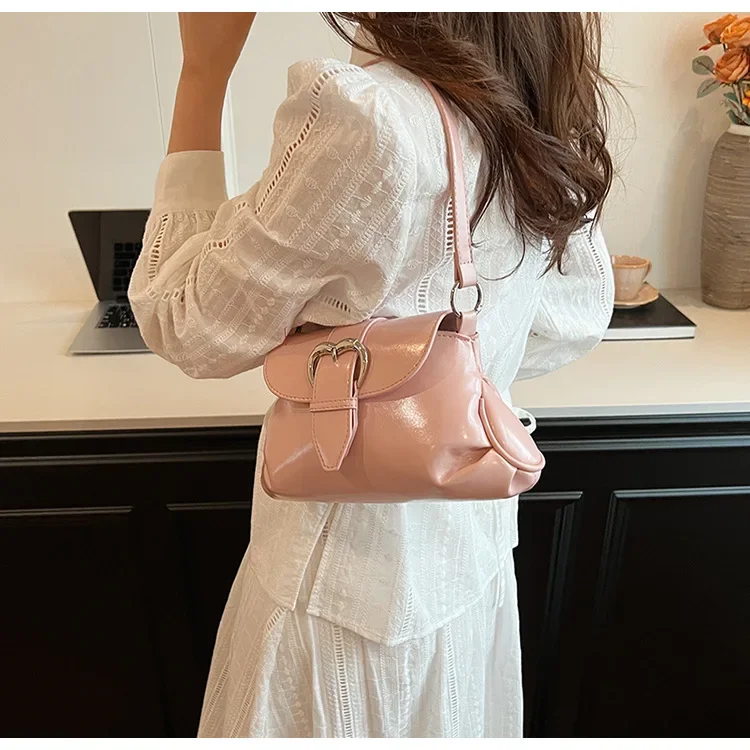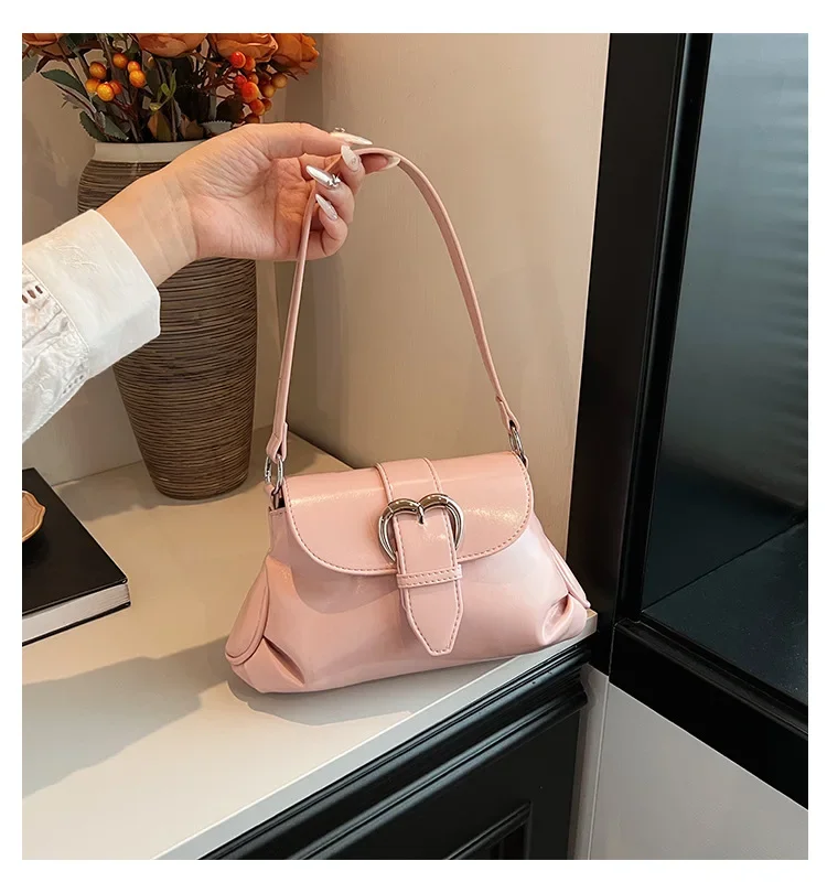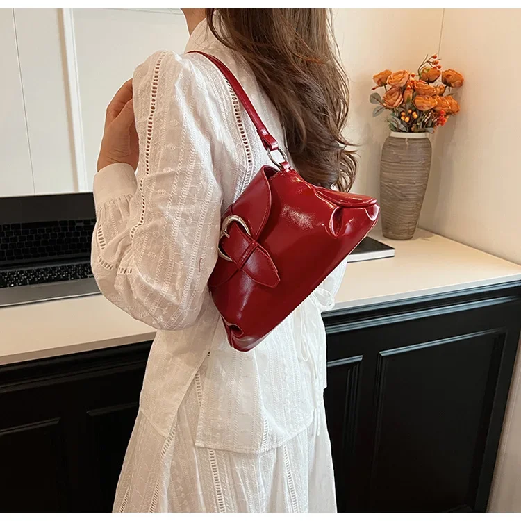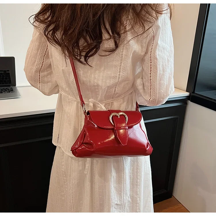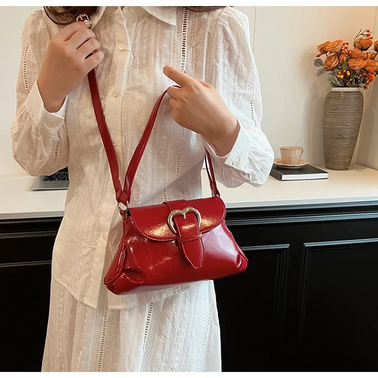 Versatile Red Wrinkle Underarm Bag For Women 2024 New Fashion One Shoulder Commuter Bag Elegant Love Buckle PU Leather Handbag