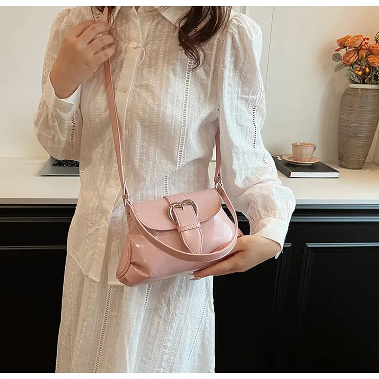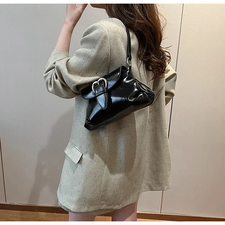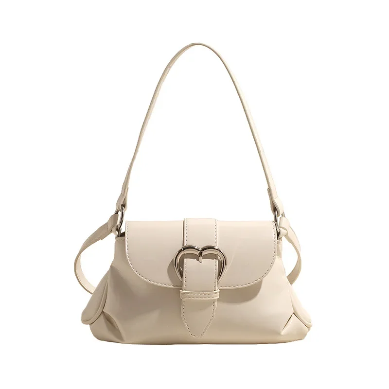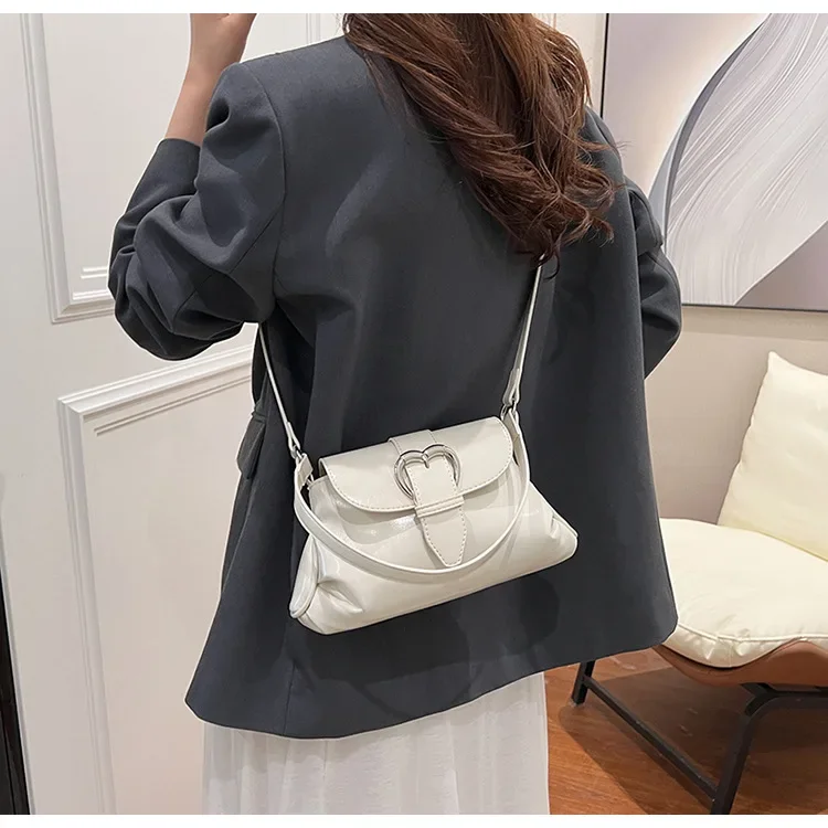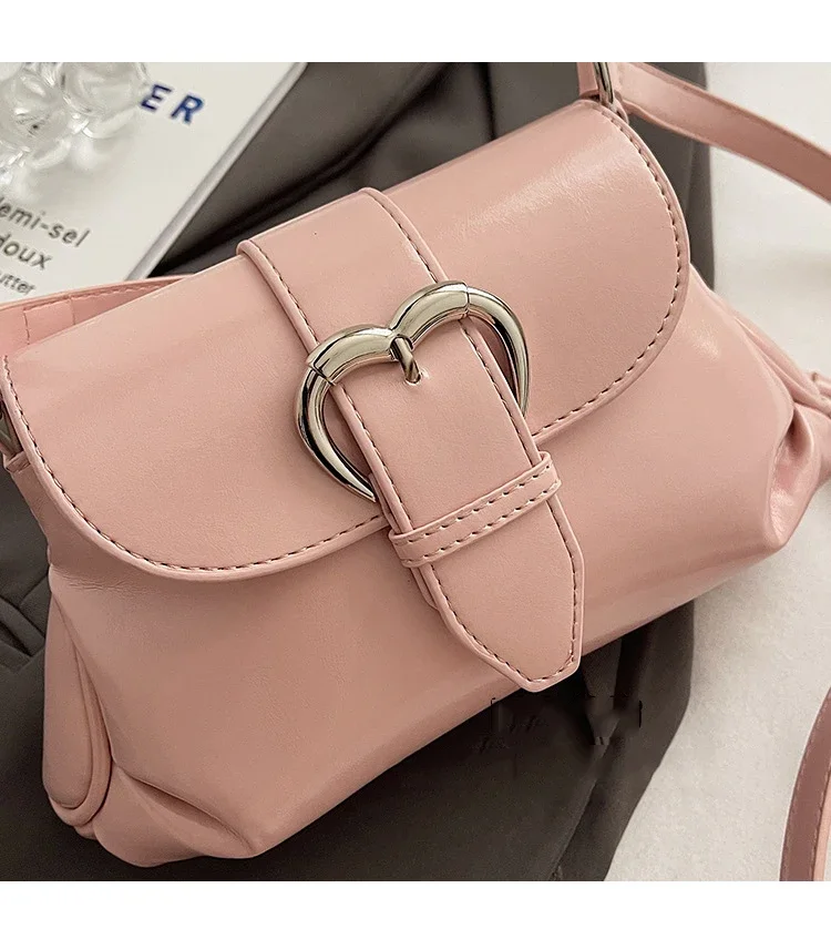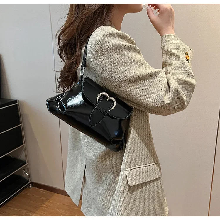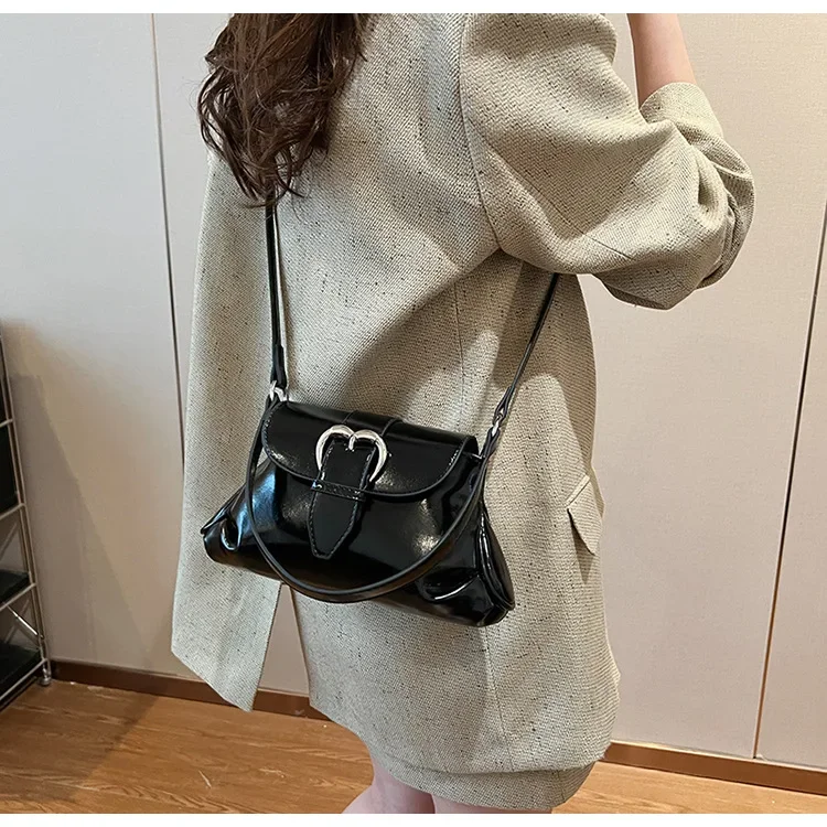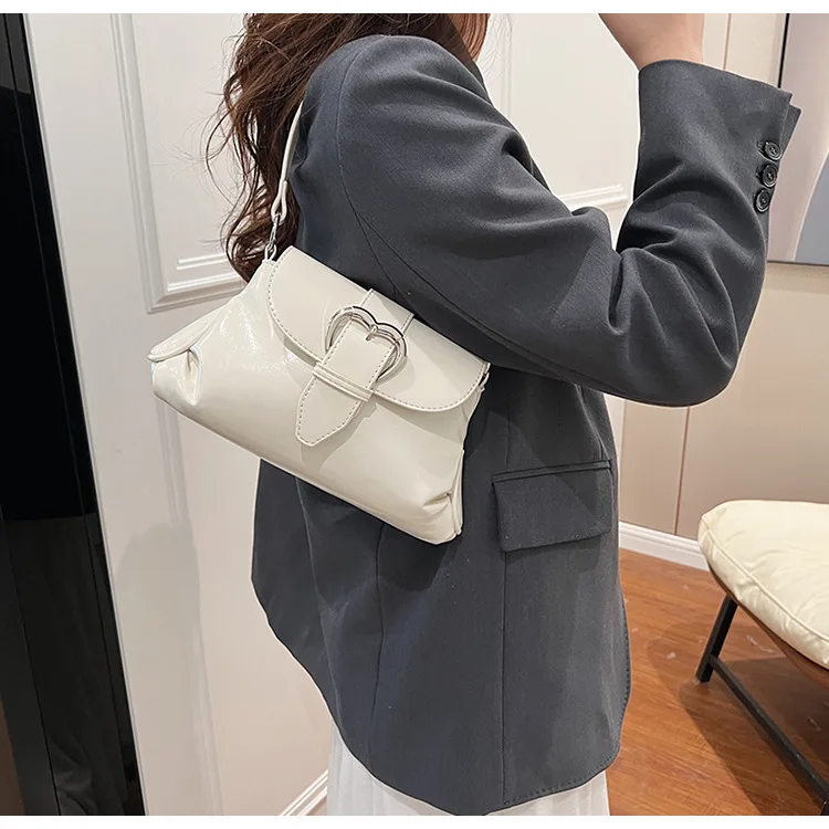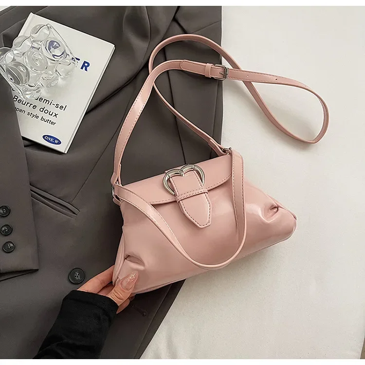Versatile Red Wrinkle Underarm Bag For Women 2024 New Fashion One Shoulder Commuter Bag Elegant Love Buckle PU Leather Handbag