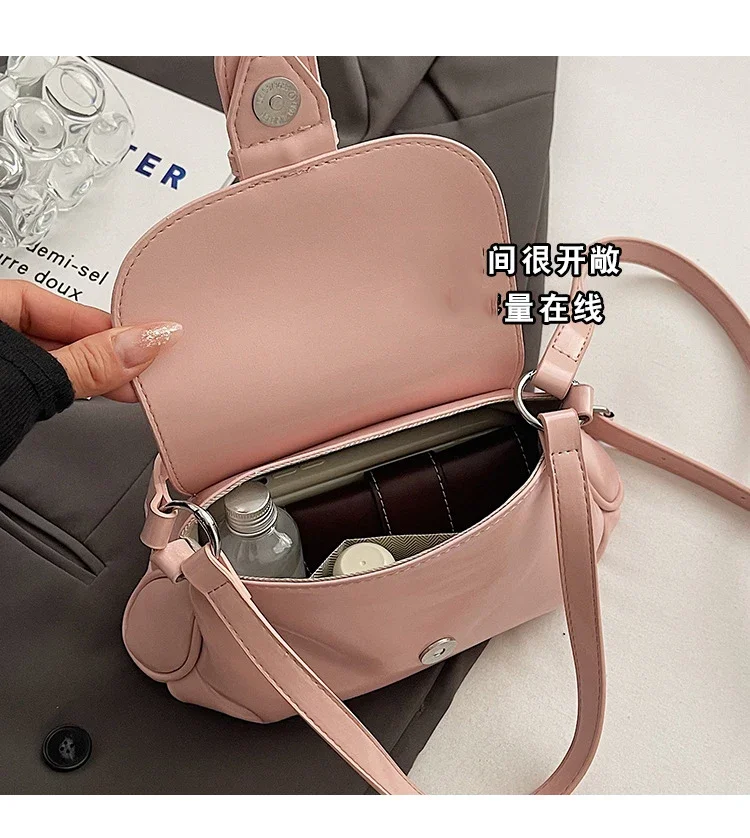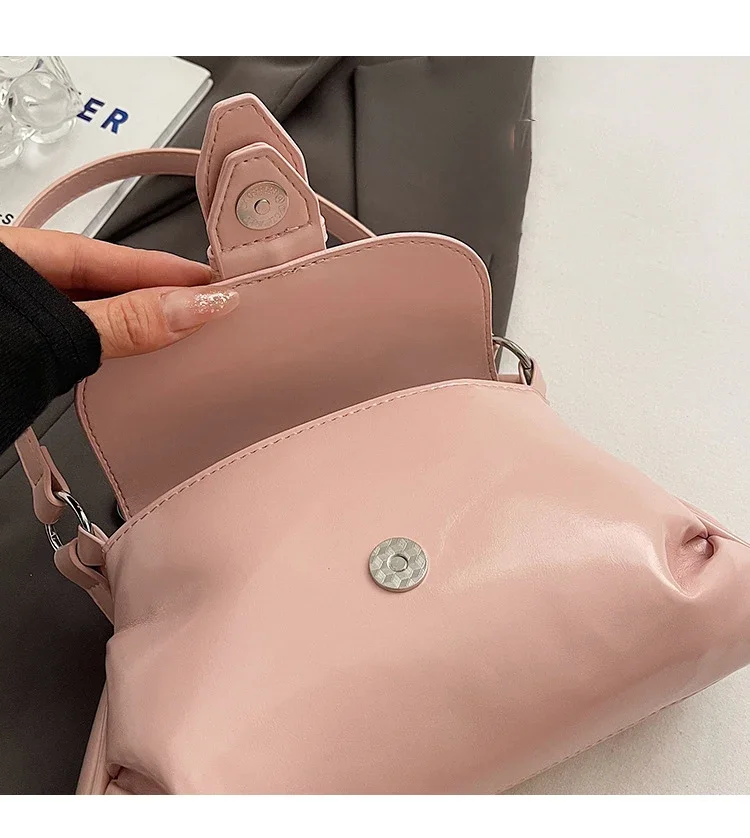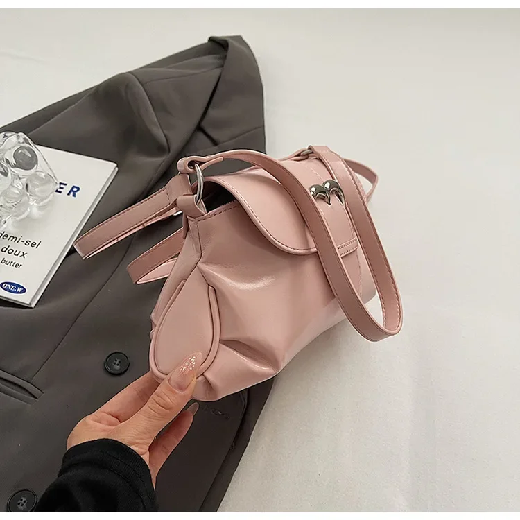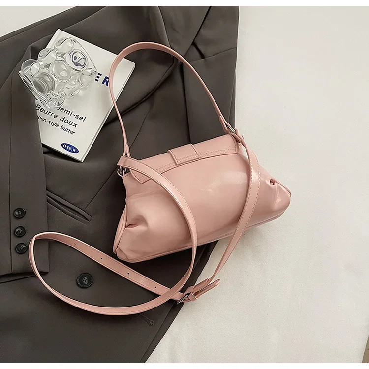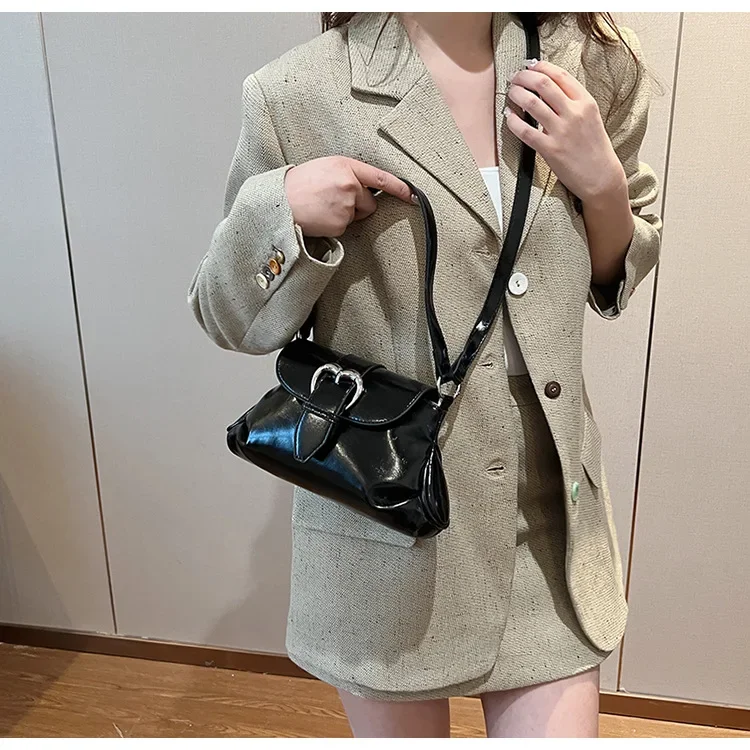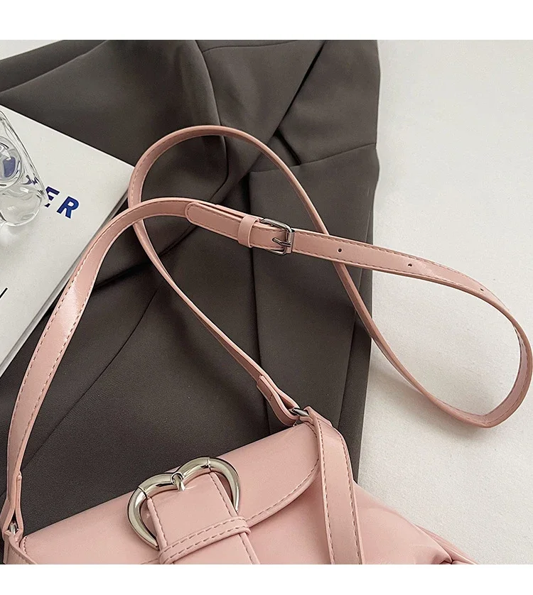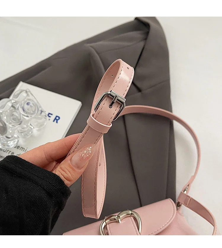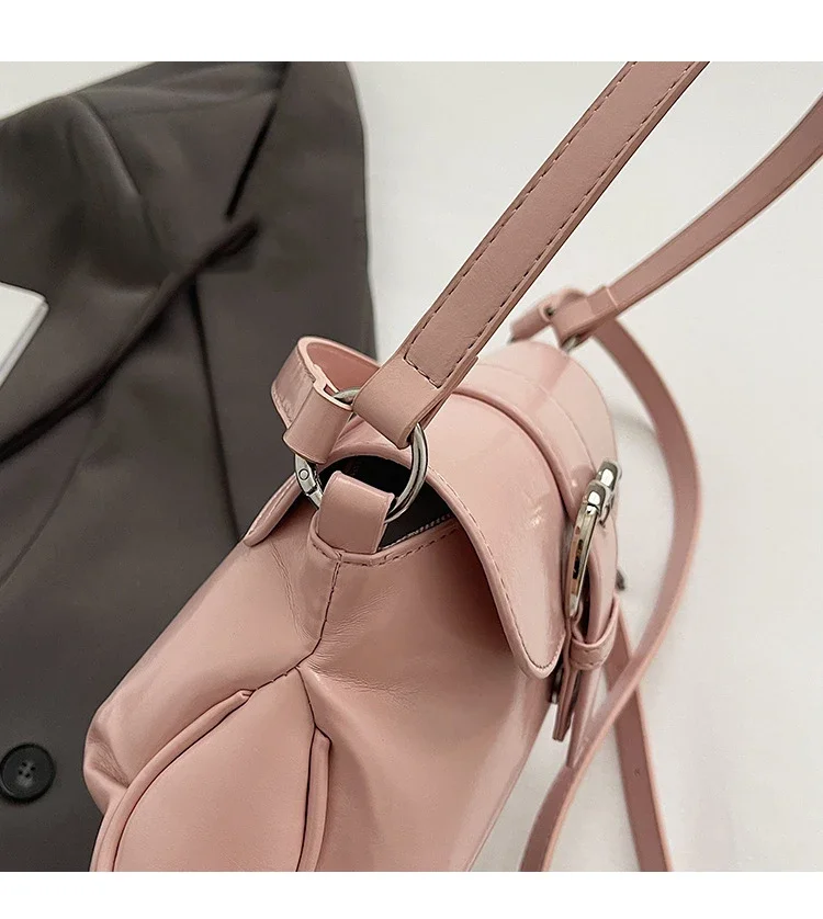 Versatile Red Wrinkle Underarm Bag For Women 2024 New Fashion One Shoulder Commuter Bag Elegant Love Buckle PU Leather Handbag