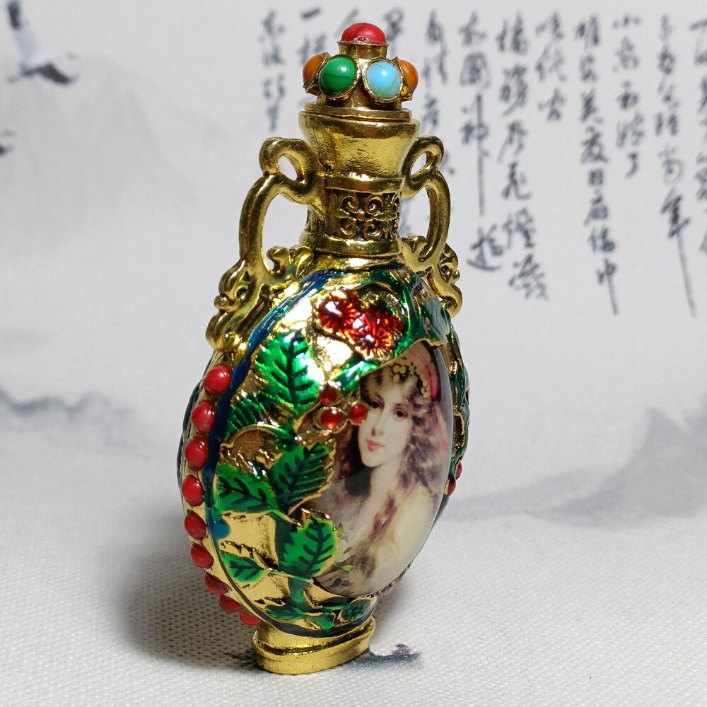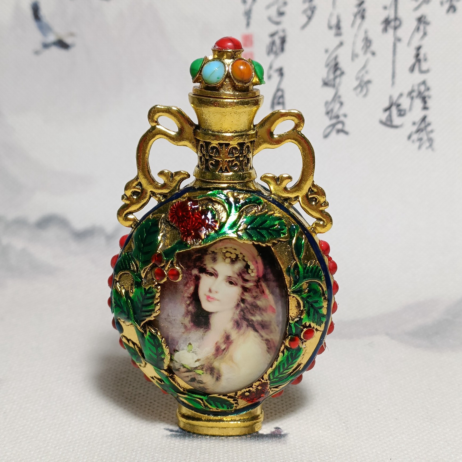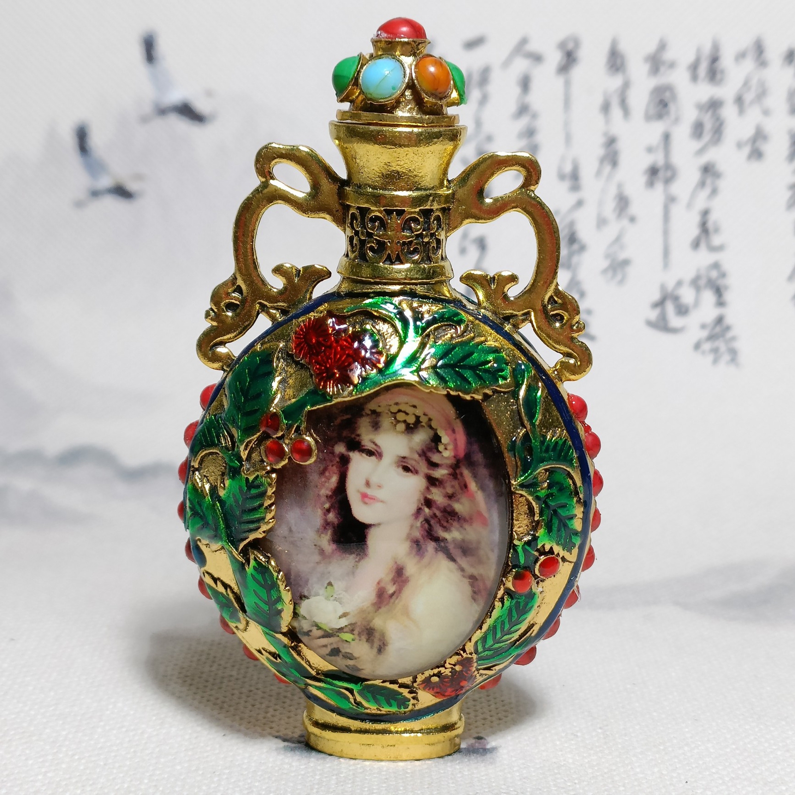 vintage Beijing chinese cloisonne snuff bottle box young women Painted souvenir gift