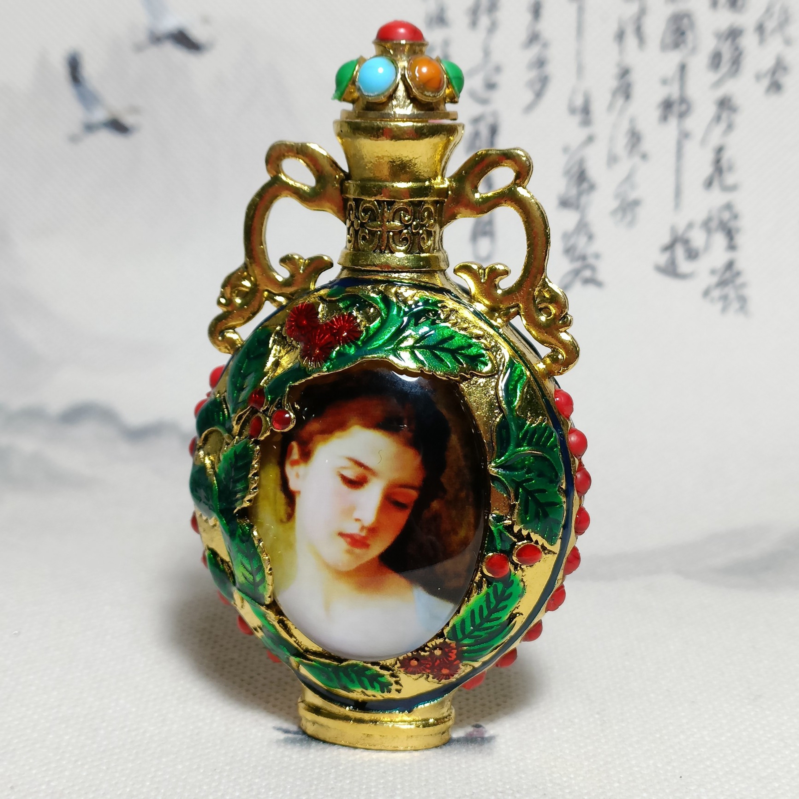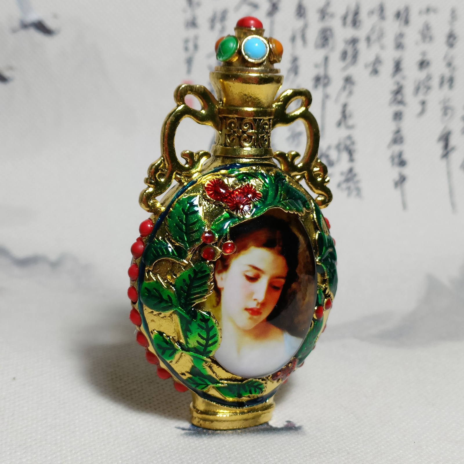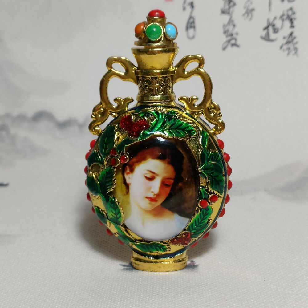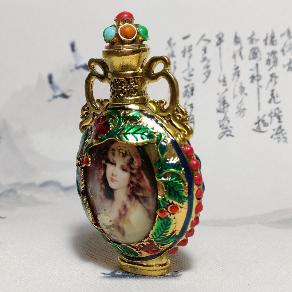 vintage Beijing chinese cloisonne snuff bottle box young women Painted souvenir gift
