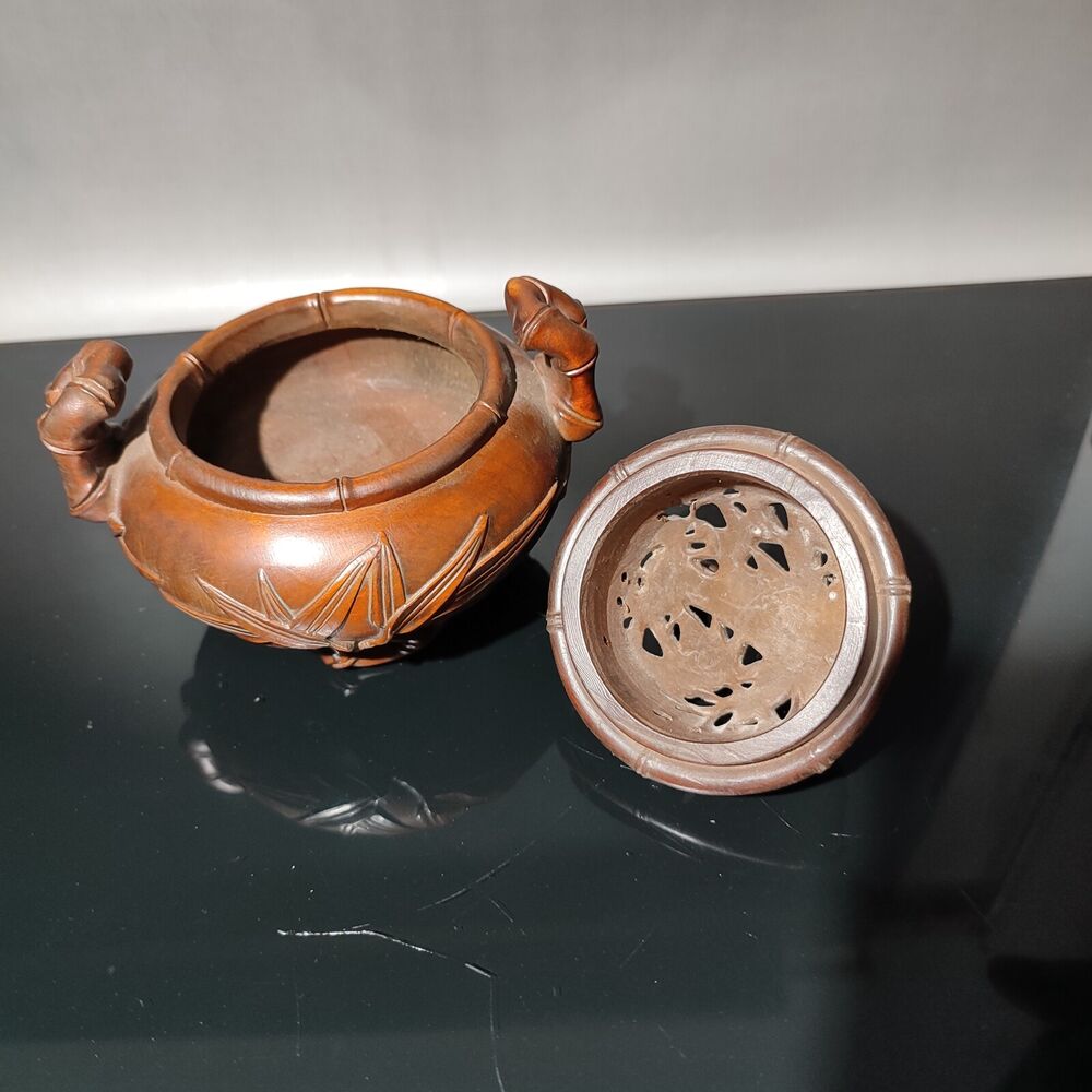 vintage Boxwood Tripod Censer buddha incense holder bamboo carved statue antique study home decor Size: 4.13x3.94" inch = 10.5x10 cm Weight: 139 g = pound = 4.09 oz