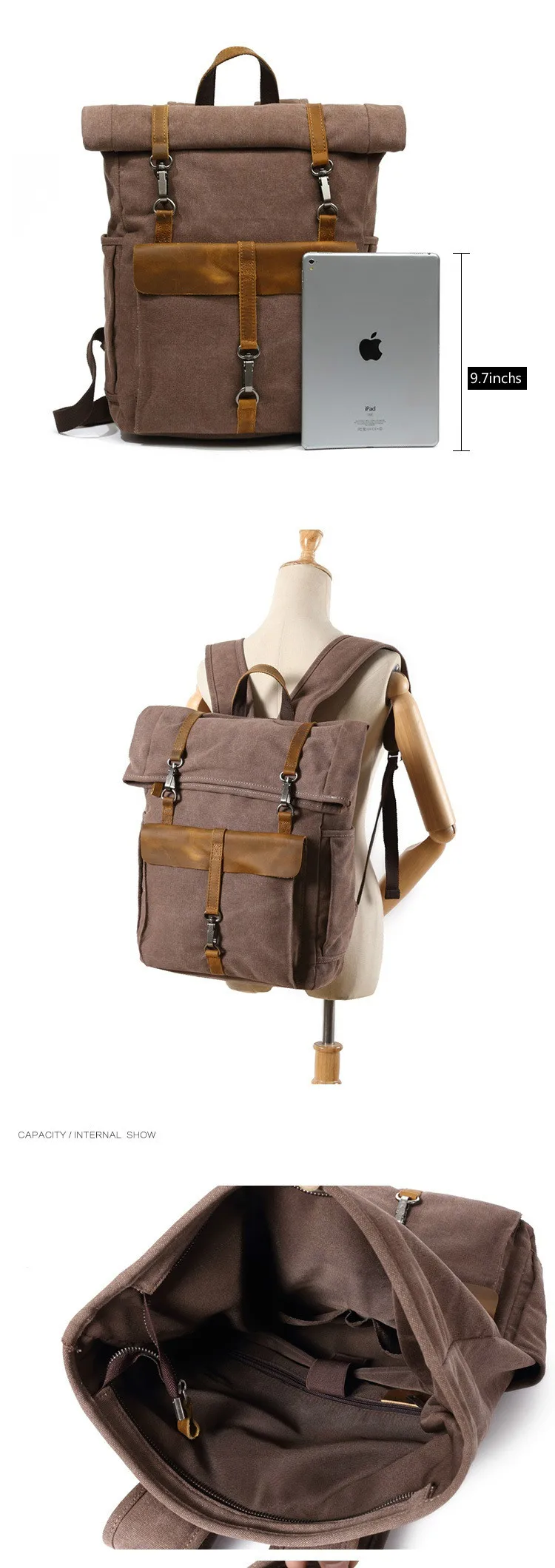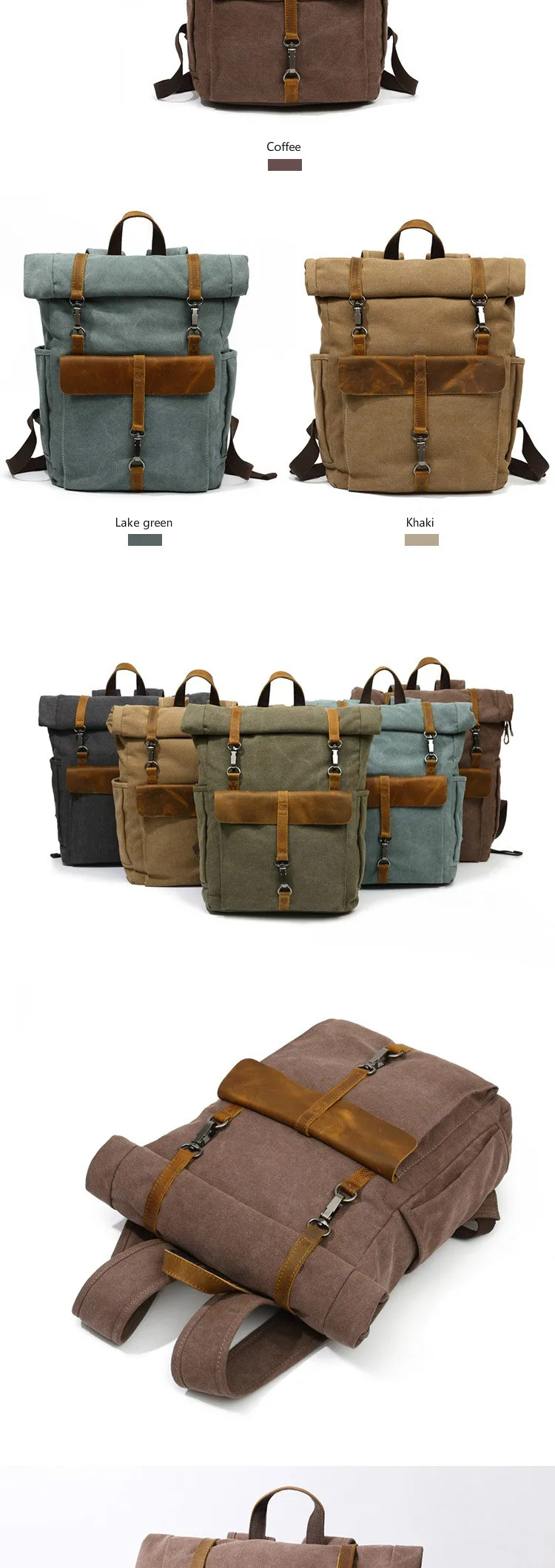 vintage Canvas Leather Backpacks Traveling Laptop backpack school bags for Teenagers Back Pack Student Computer Rucksacks
