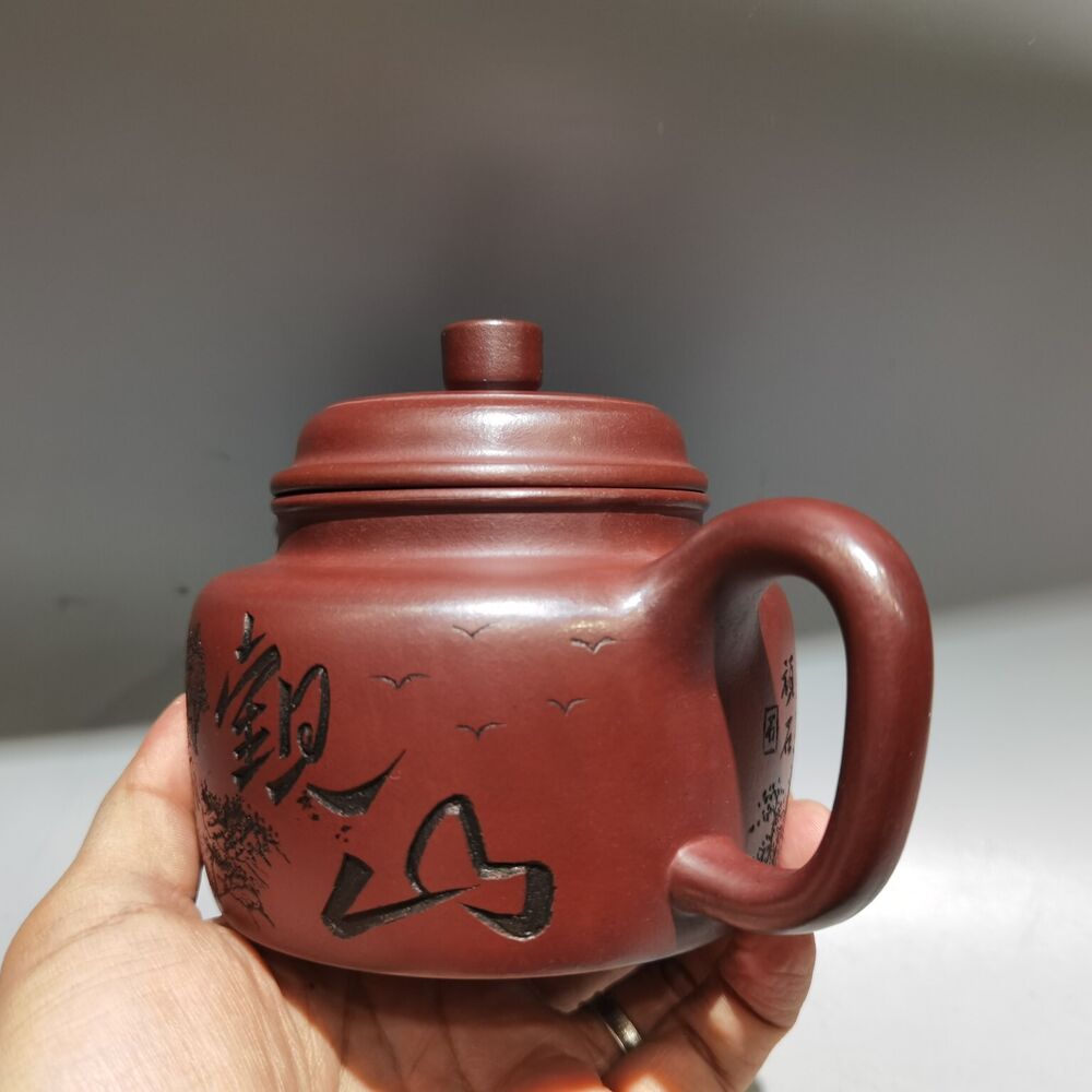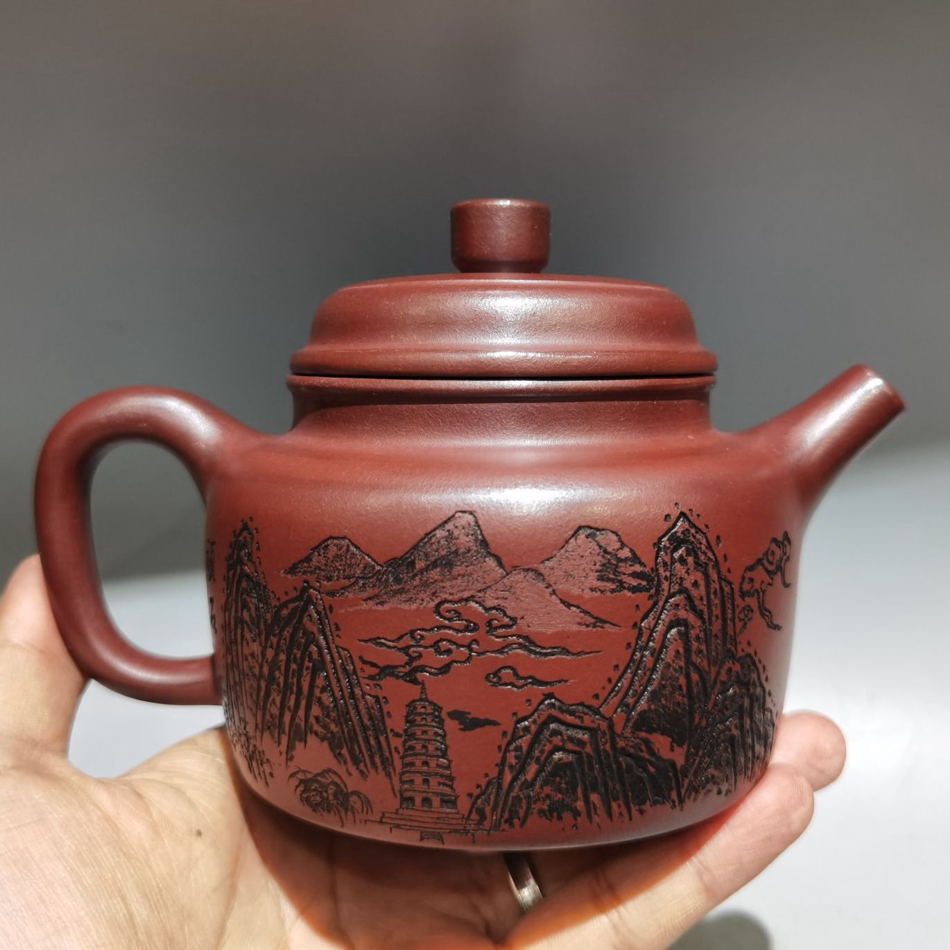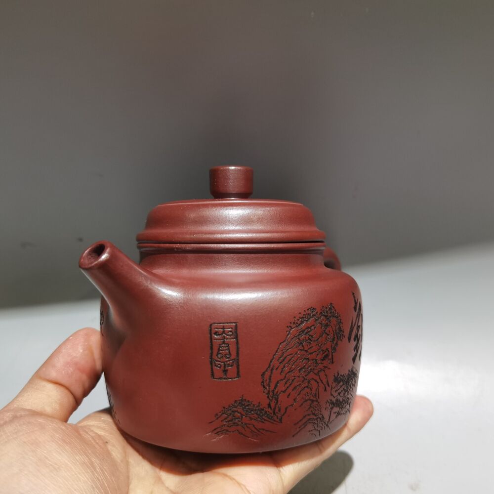 Vintage China Yixing Purple Clay Teapot Zisha Ceramic Carving Landscape Teaware