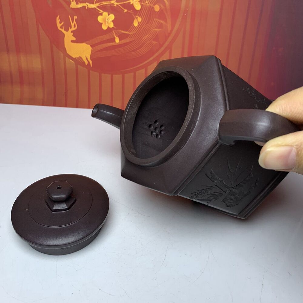 Vintage China Yixing Purple Clay Teapot Zisha Ceremony Bamboo Teaware Collection