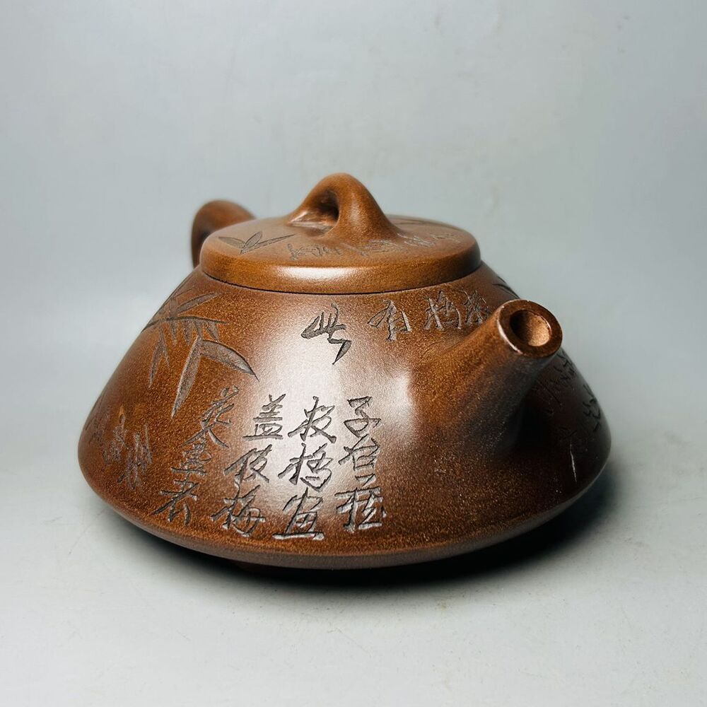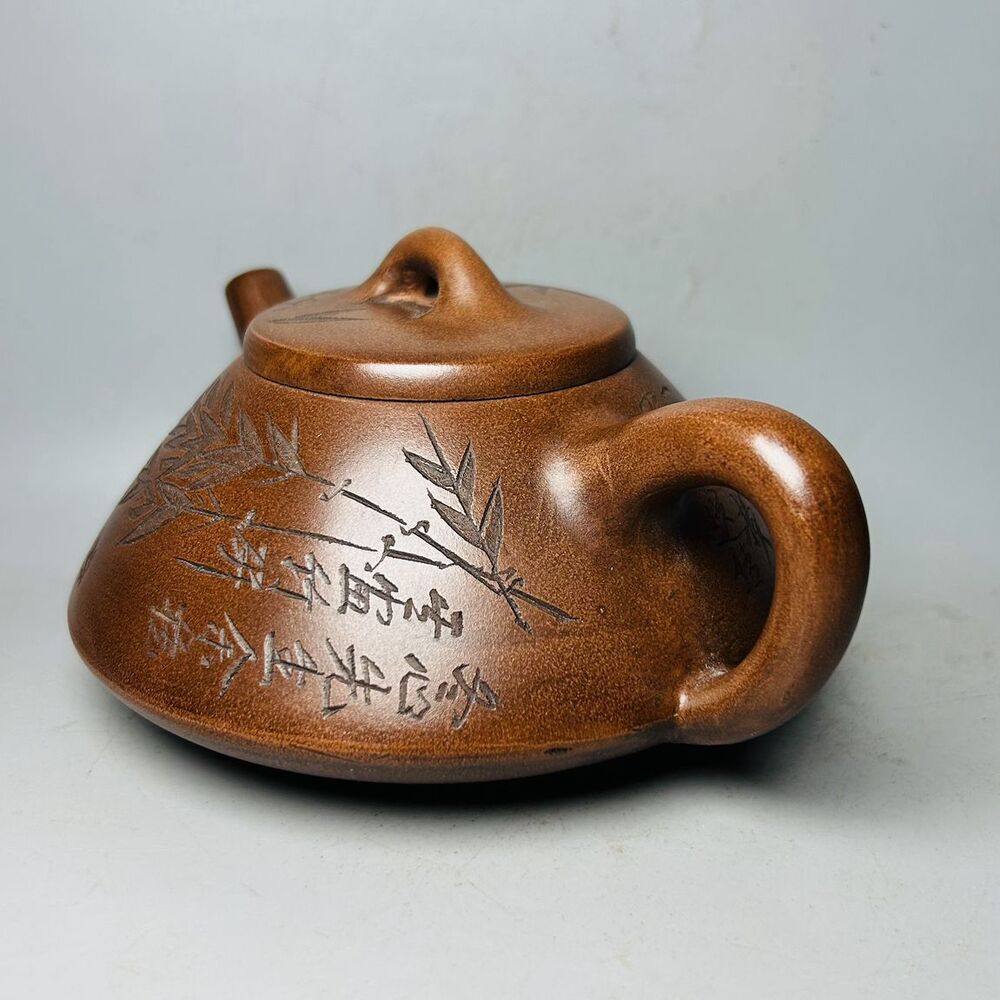 Vintage Chinese Yixing Purple Clay Teapot Zisha Ceramic Bamboo Tea Set Collect