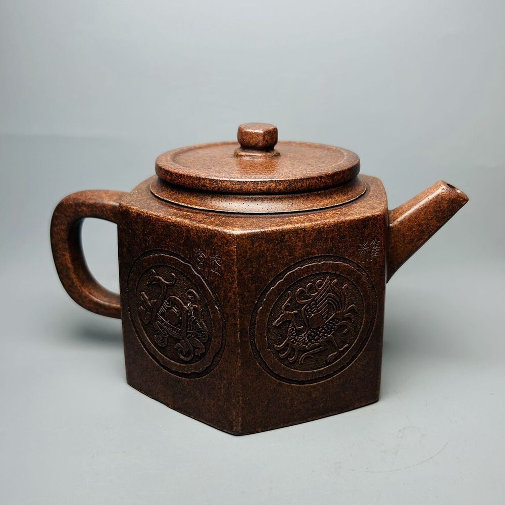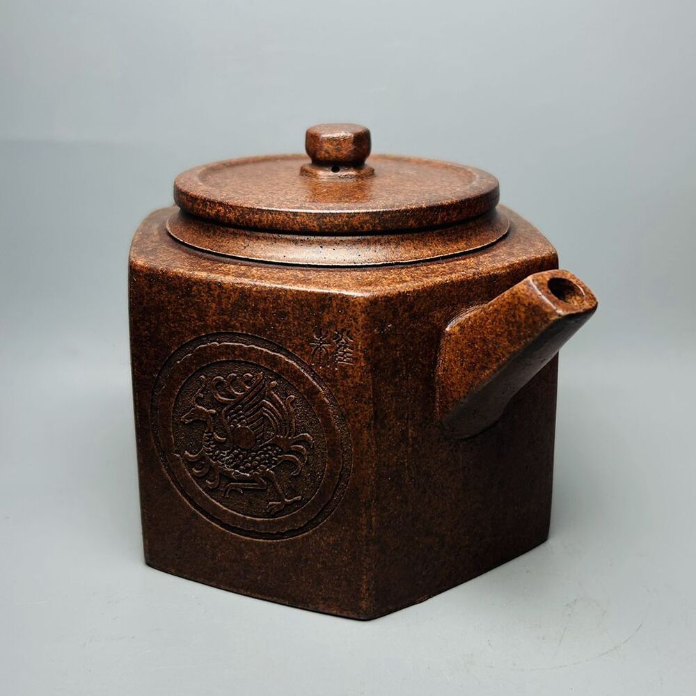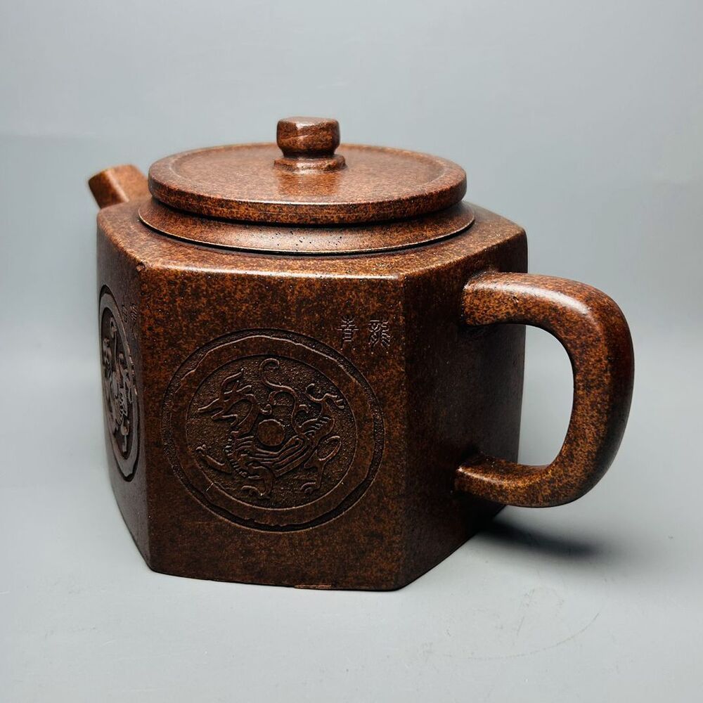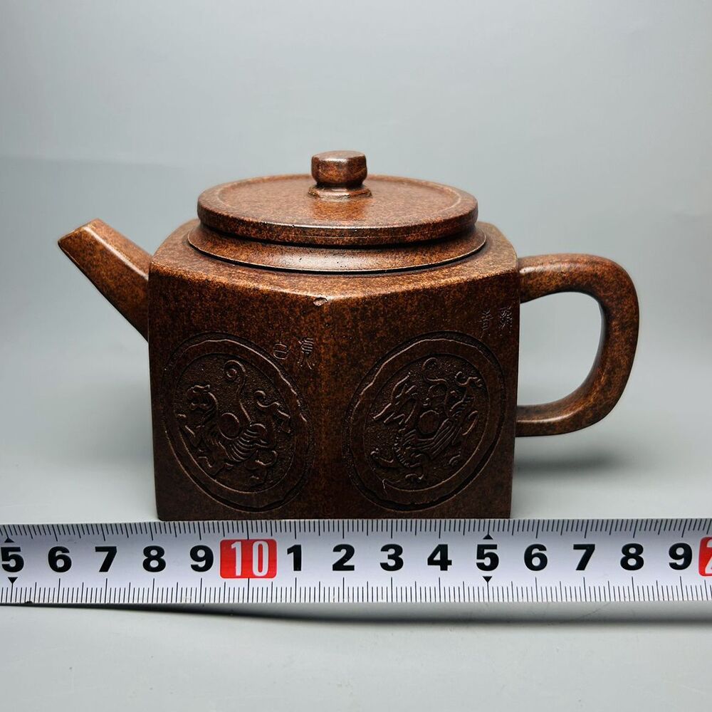 Vintage Chinese Yixing Purple Clay Teapot Zisha Ceramic Carving Animal Teaware