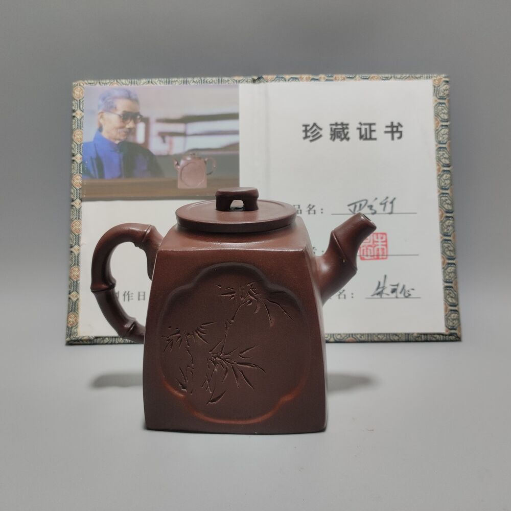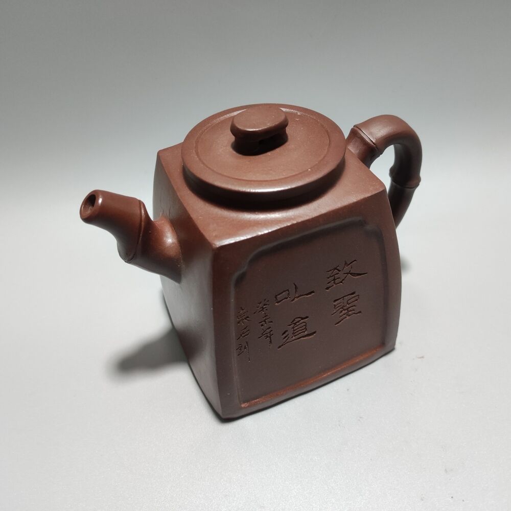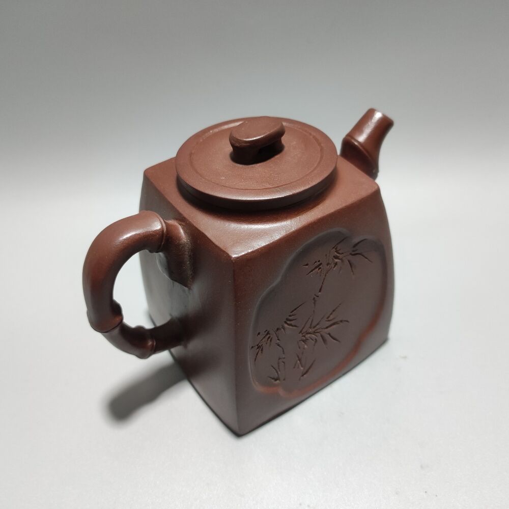 Vintage Chinese Yixing Purple Clay Teapot Zisha Ceramic Carving Bamboo Teaware