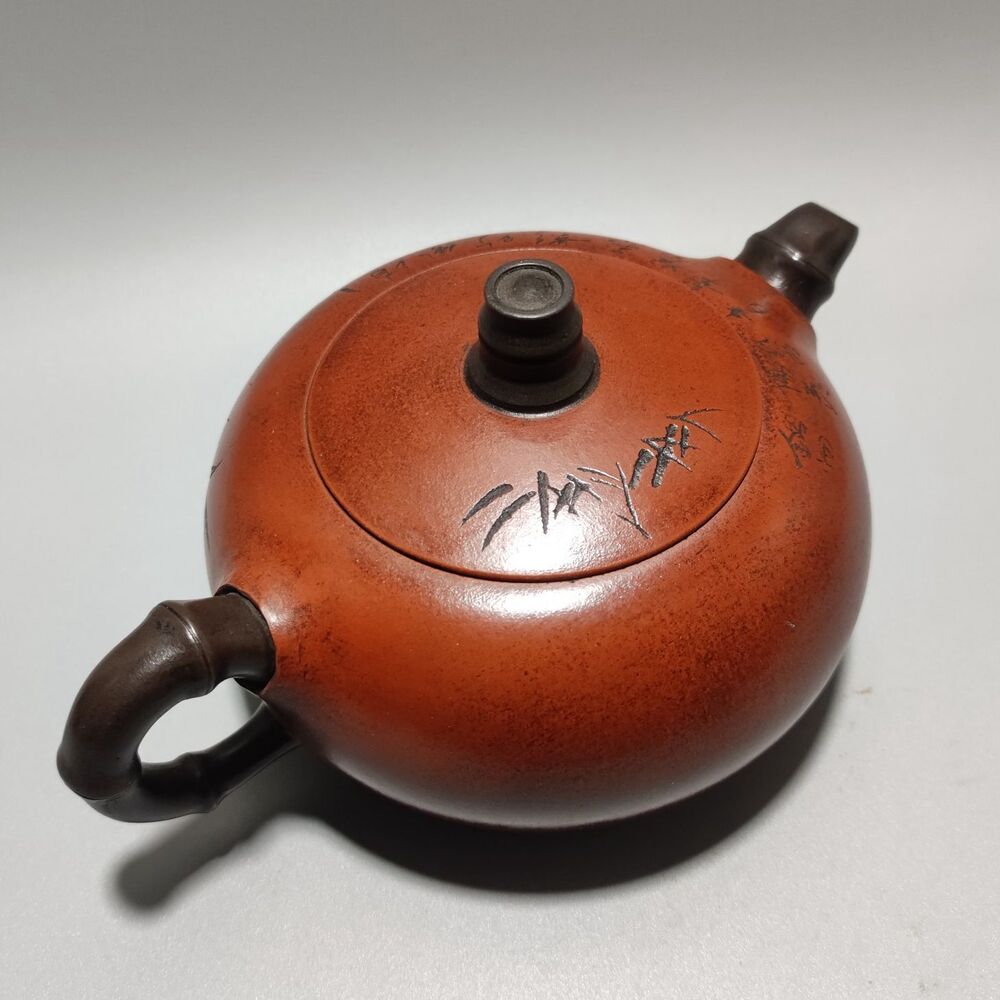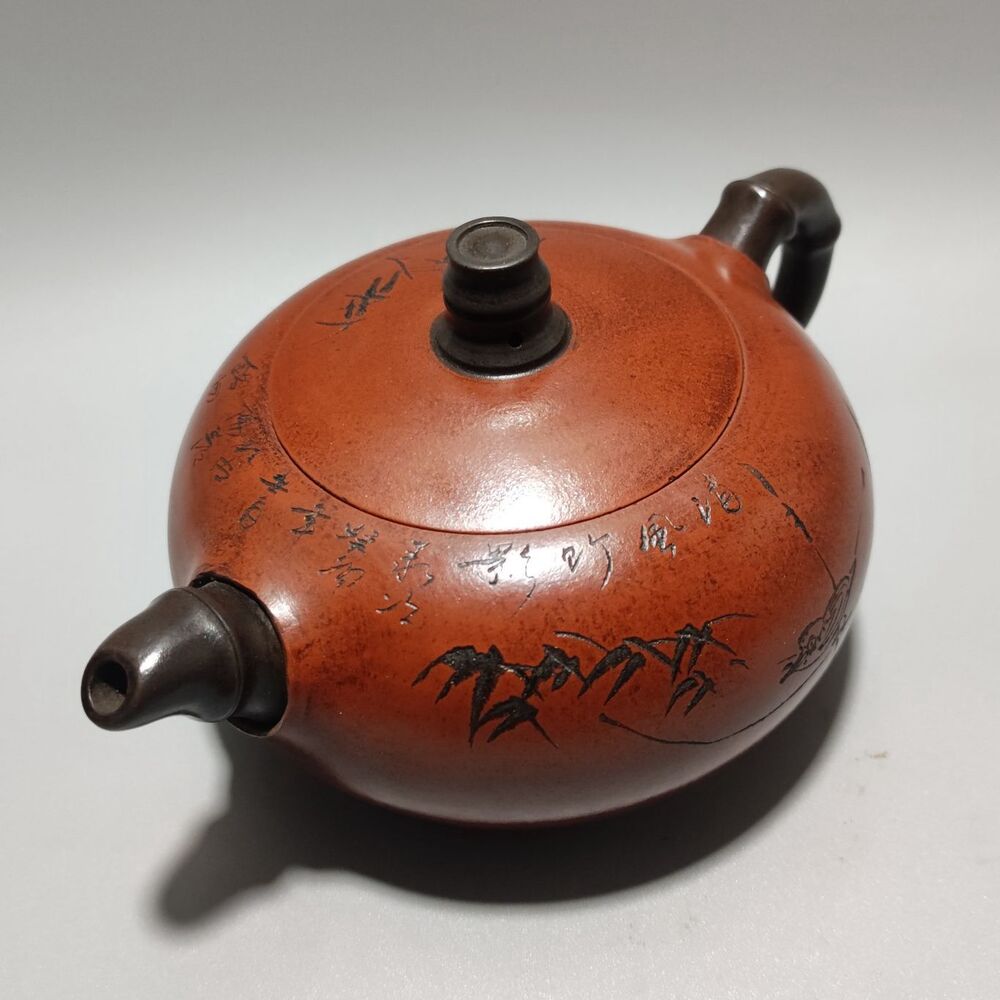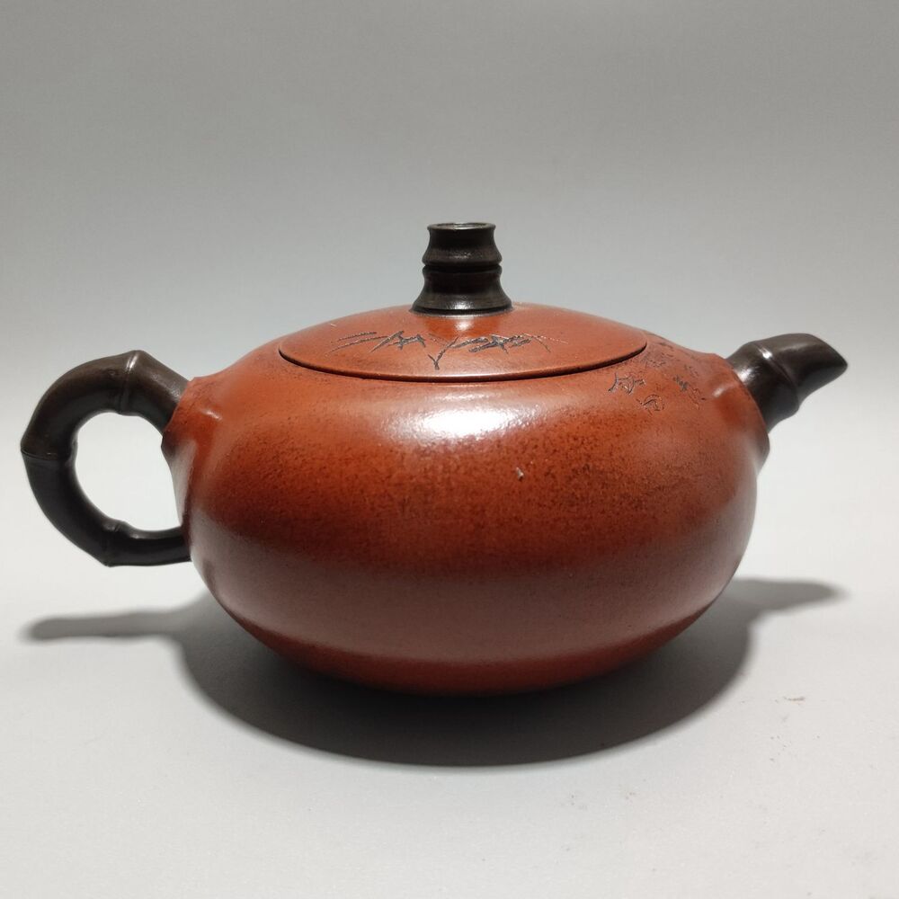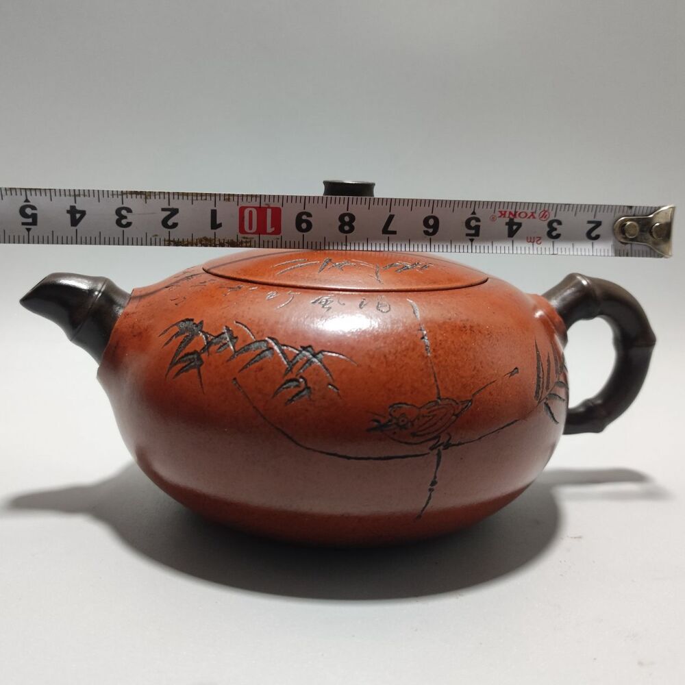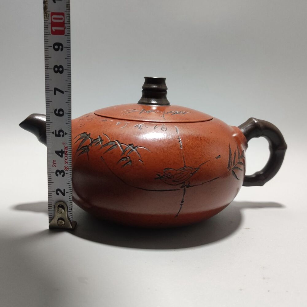 Vintage Chinese Yixing Purple Clay Teapot Zisha Ceramic Carving Bamboo Teaware