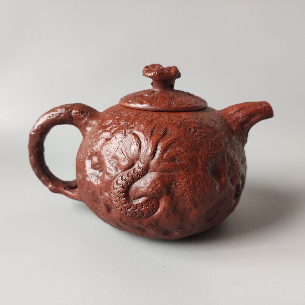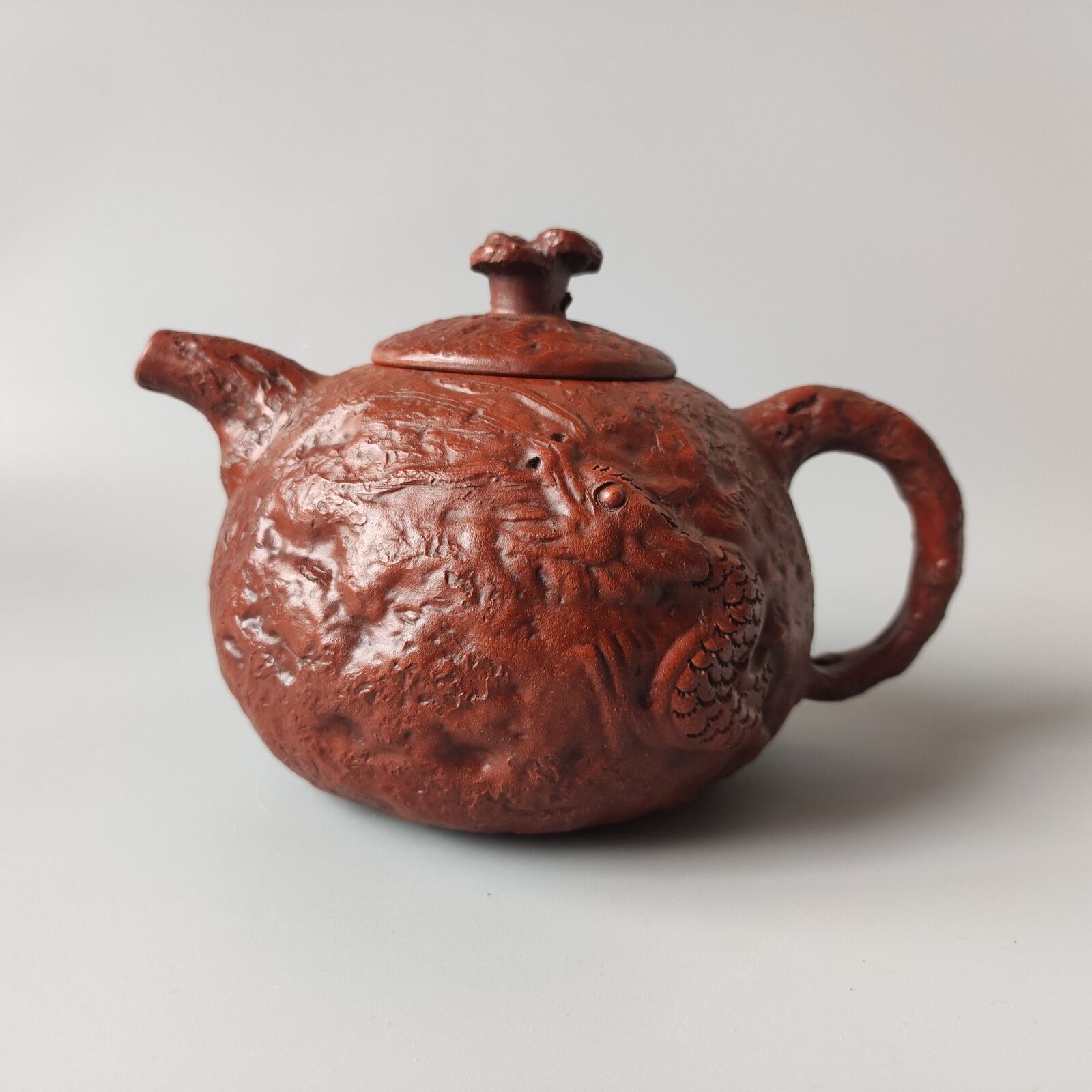 Vintage Chinese Yixing Purple Clay Teapot Zisha Ceramic Carving Dragon Tea Set
