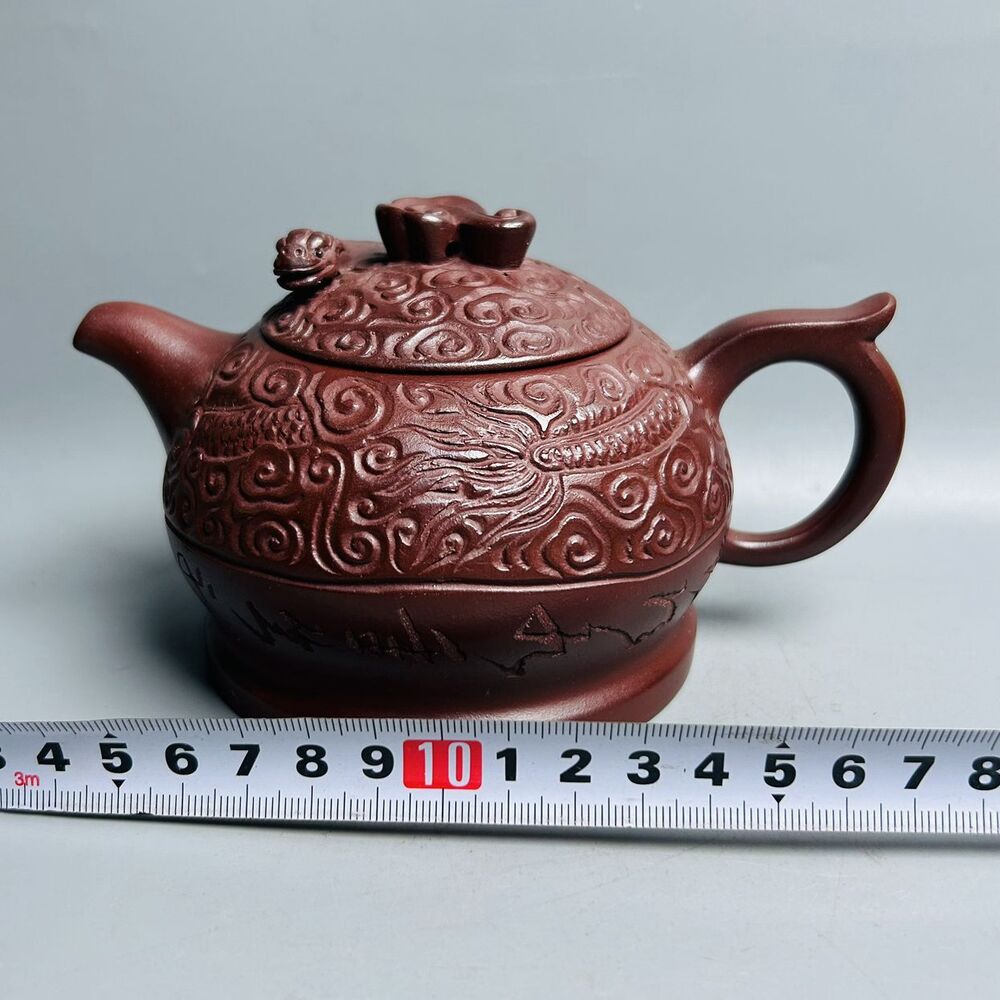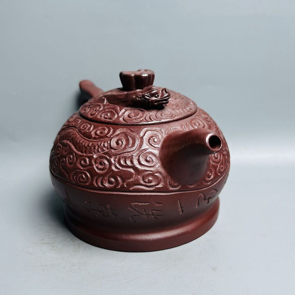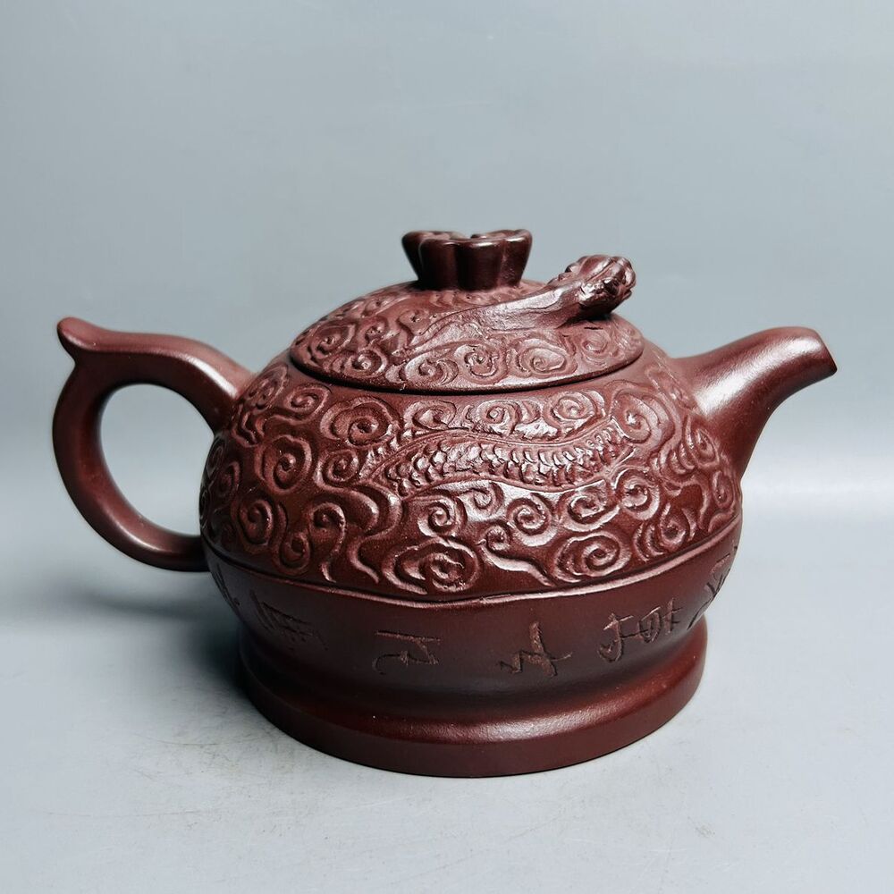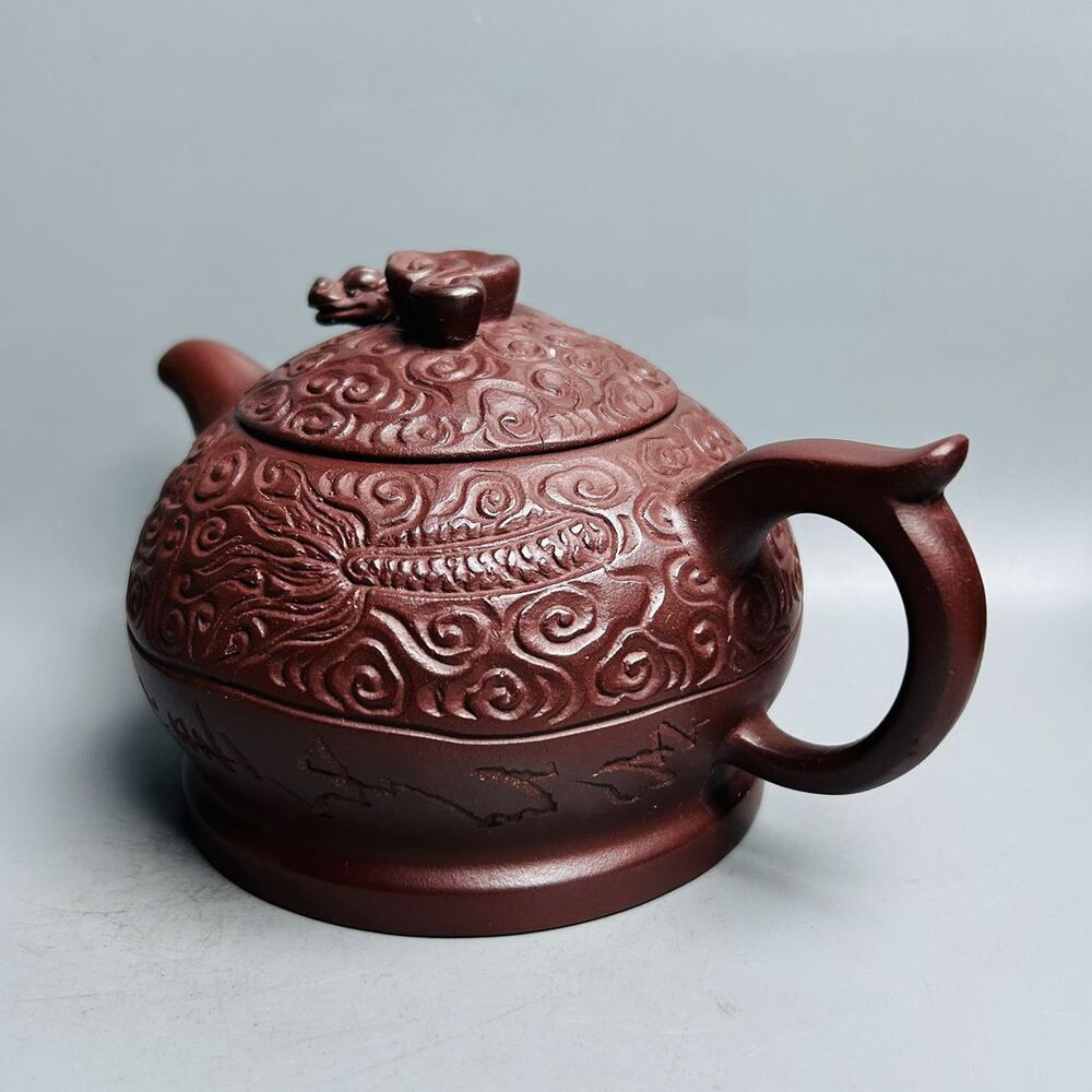 Vintage Chinese Yixing Purple Clay Teapot Zisha Ceramic Carving Dragon Teaware
