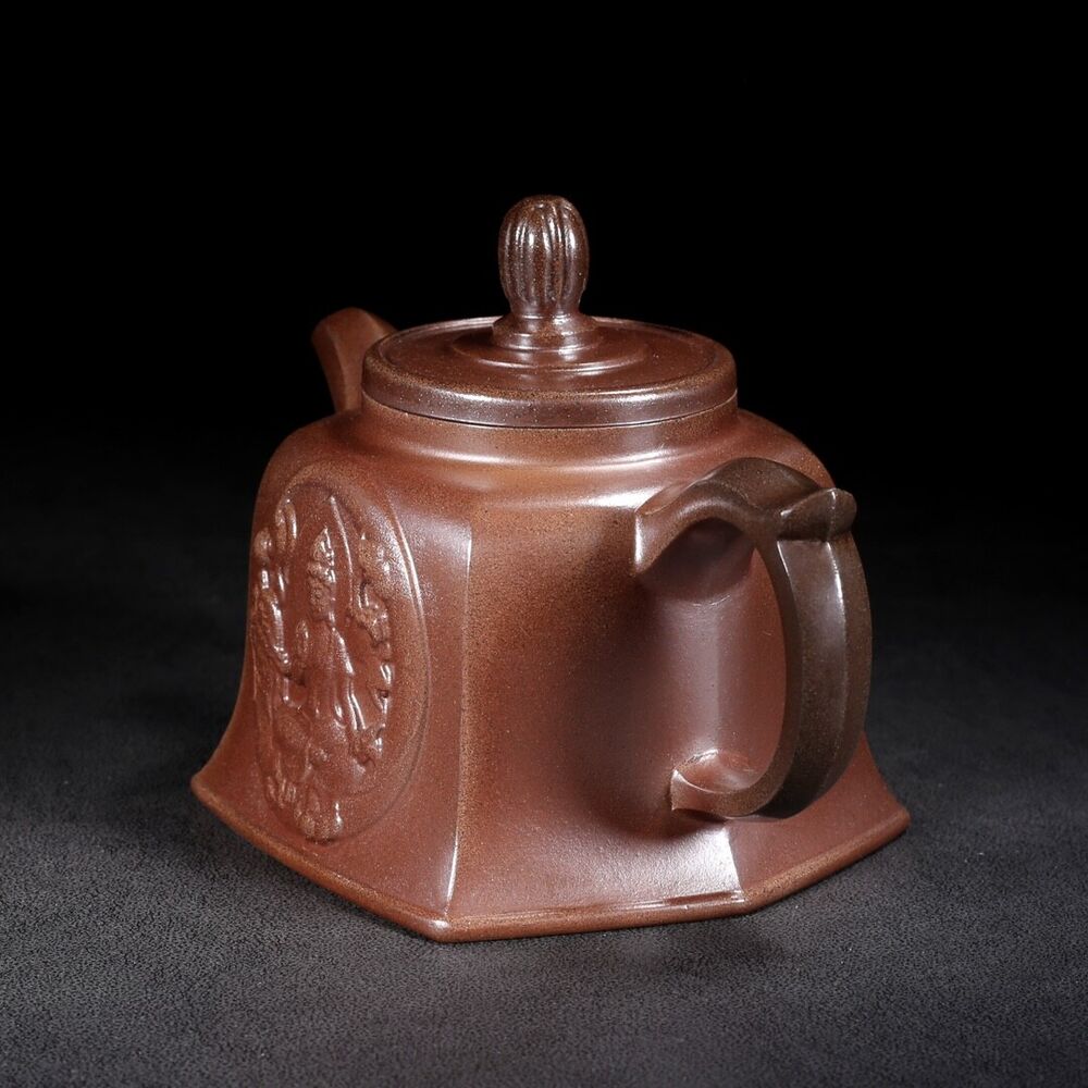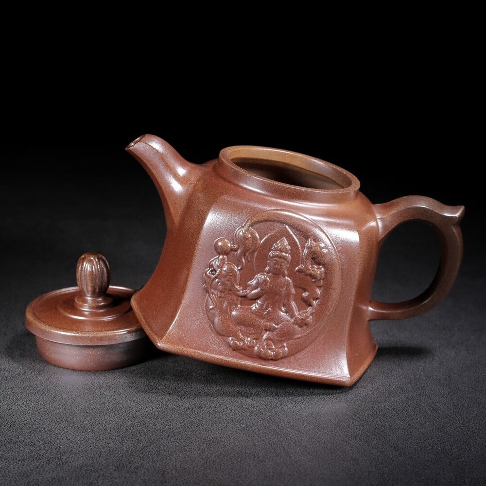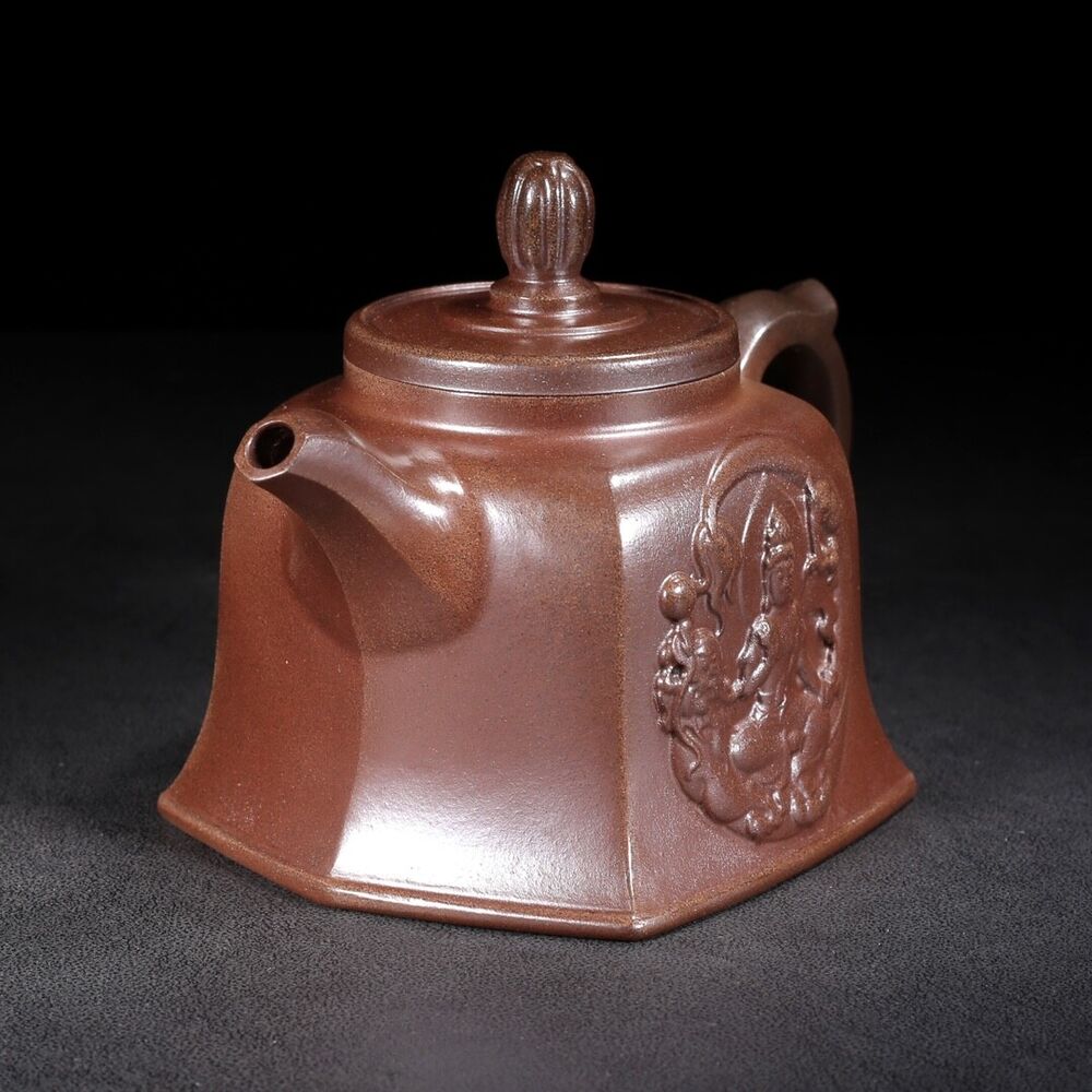 Vintage Chinese Yixing Purple Clay Teapot Zisha Ceramic Carving Guanyin Teaware