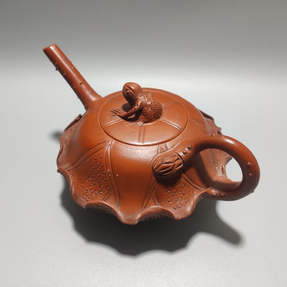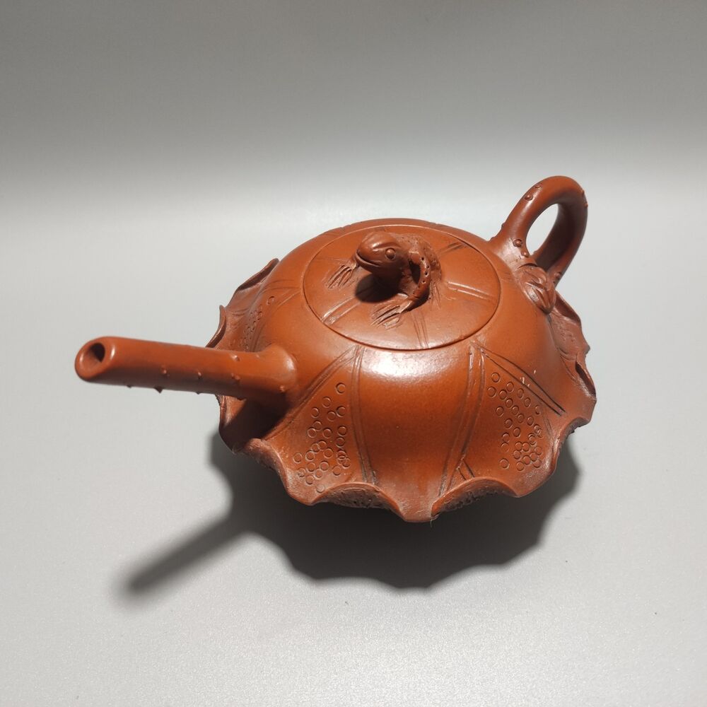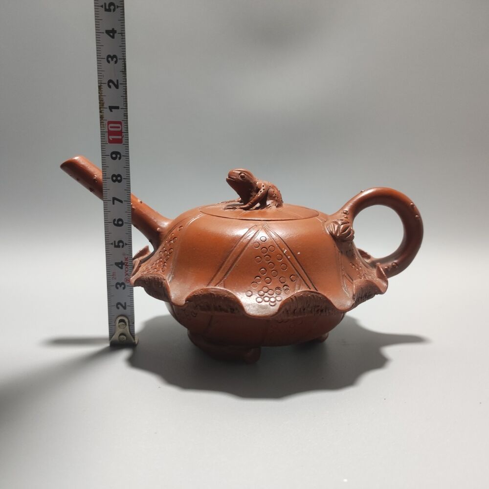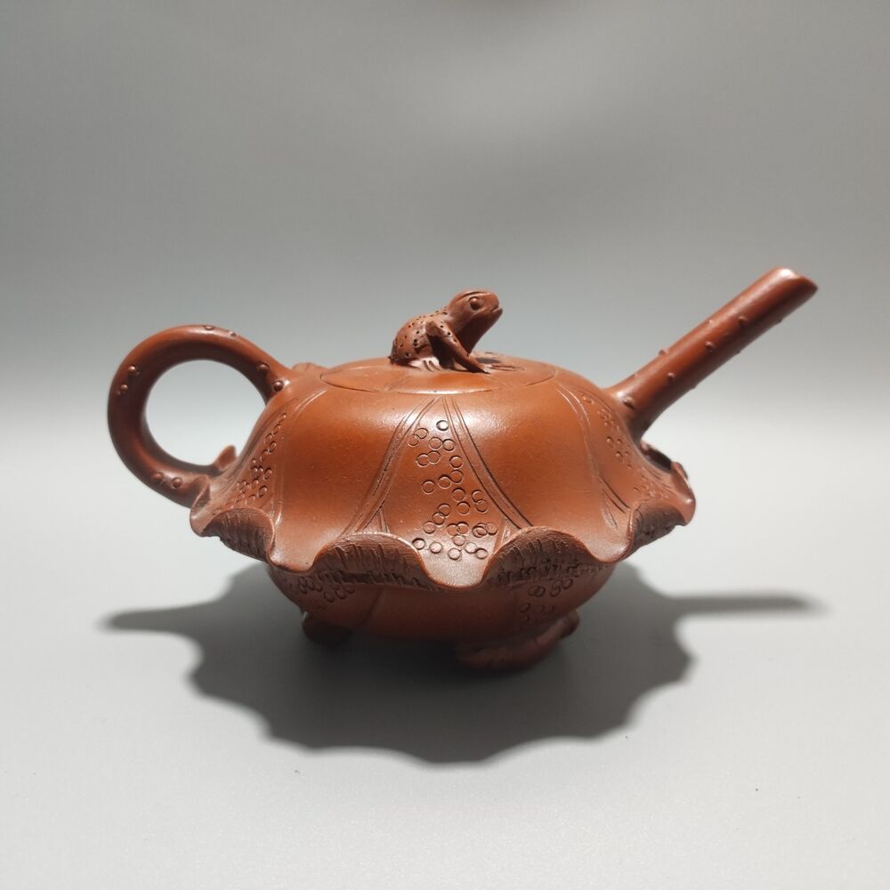 Vintage Chinese Yixing Purple Clay Teapot Zisha Ceramic Lotus Leaf Frog Tea Set