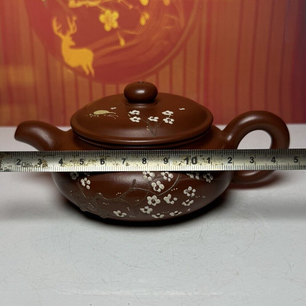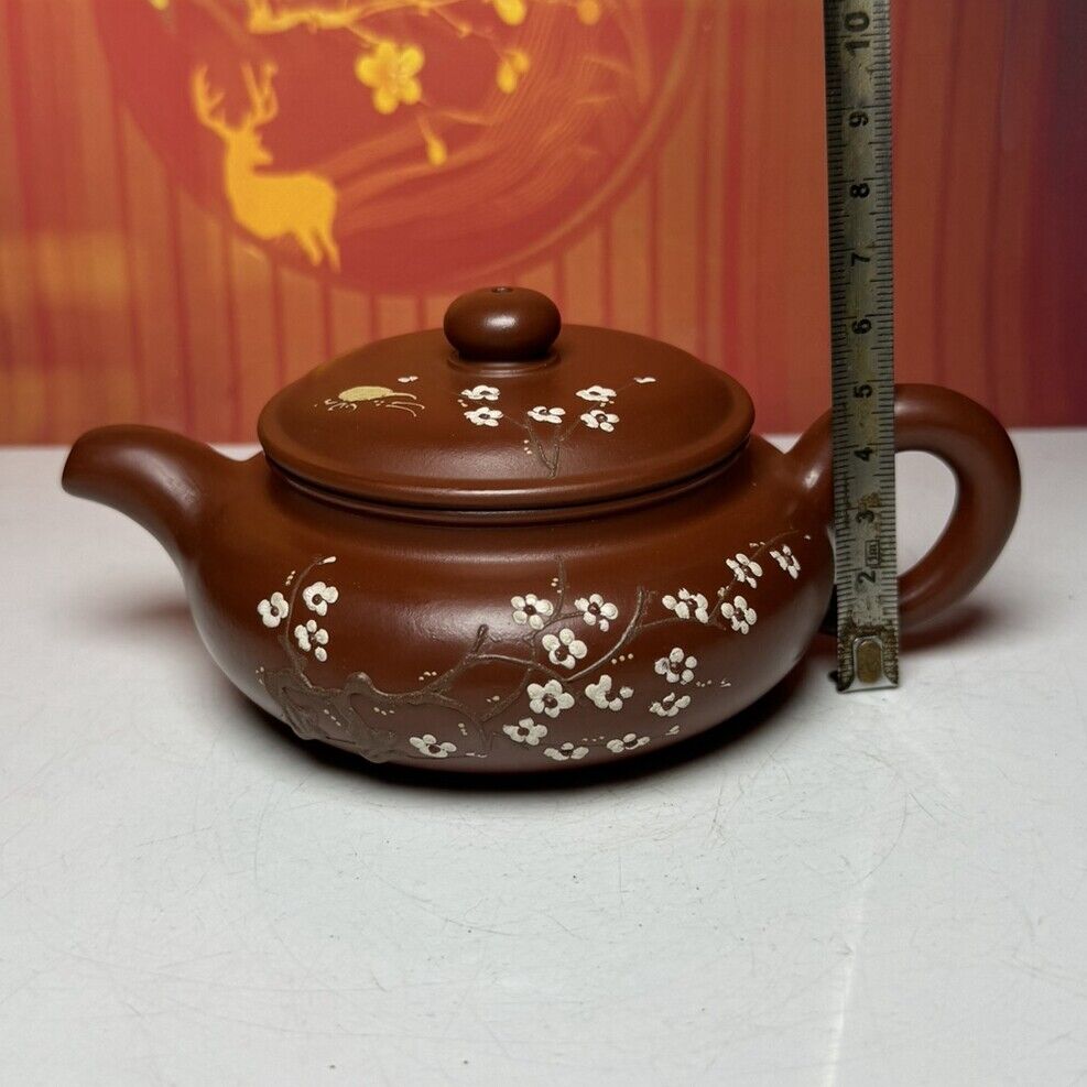 Vintage Chinese Yixing Purple Clay Teapot Zisha Ceramic Plum Blossom Teaware Art