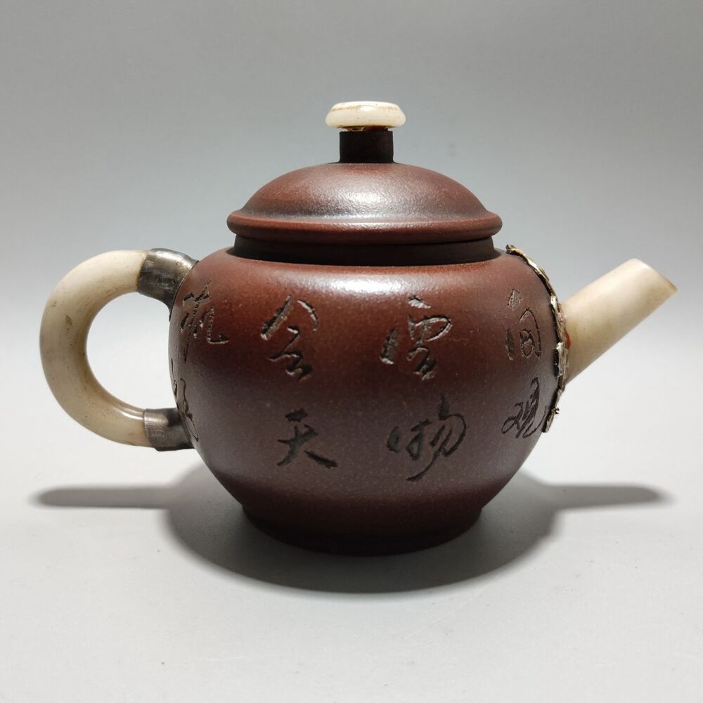 Vintage Chinese Yixing Purple Clay Teapot Zisha Ceremony Bamboo Tea Set Collect