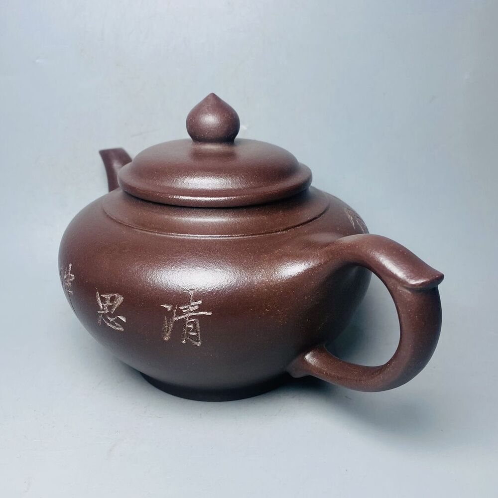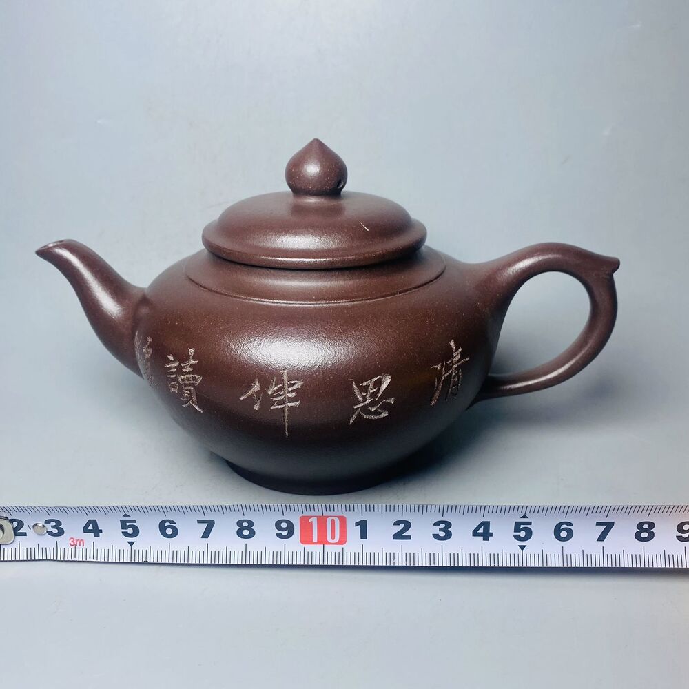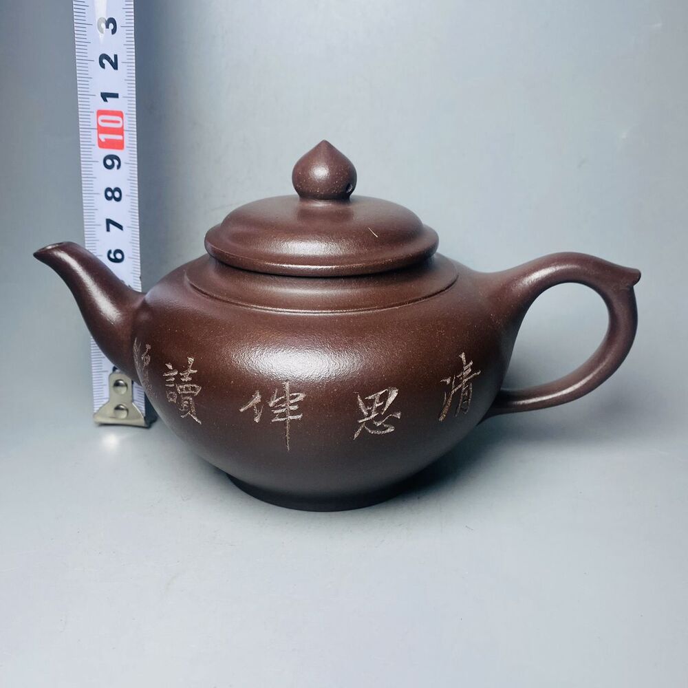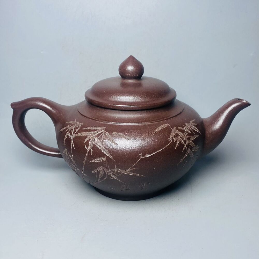 Vintage Chinese Yixing Purple Clay Teapot Zisha Ceremony Carving Bamboo Tea Set