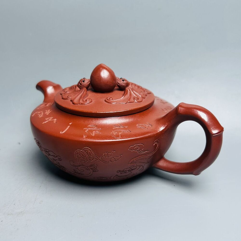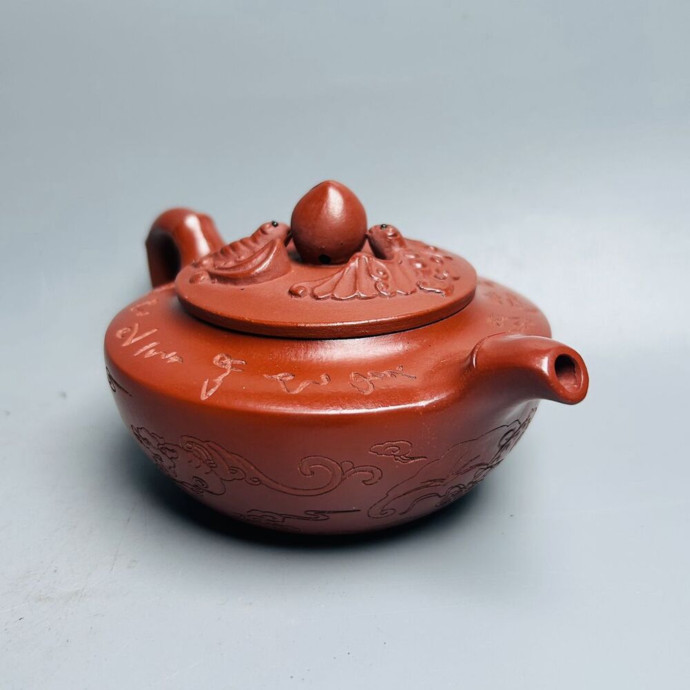 Vintage Chinese Yixing Purple Clay Teapot Zisha Ceremony Carving Collectible Art