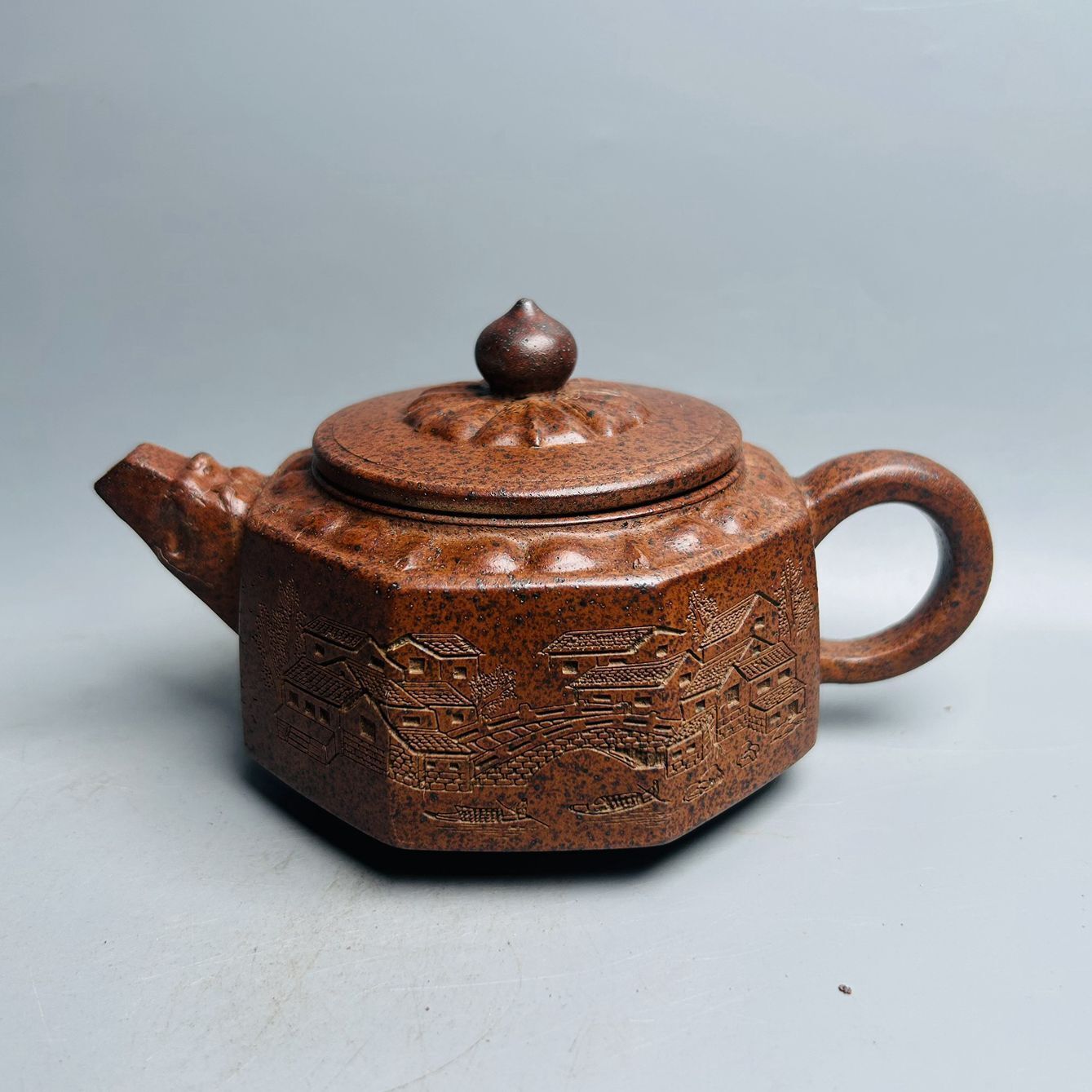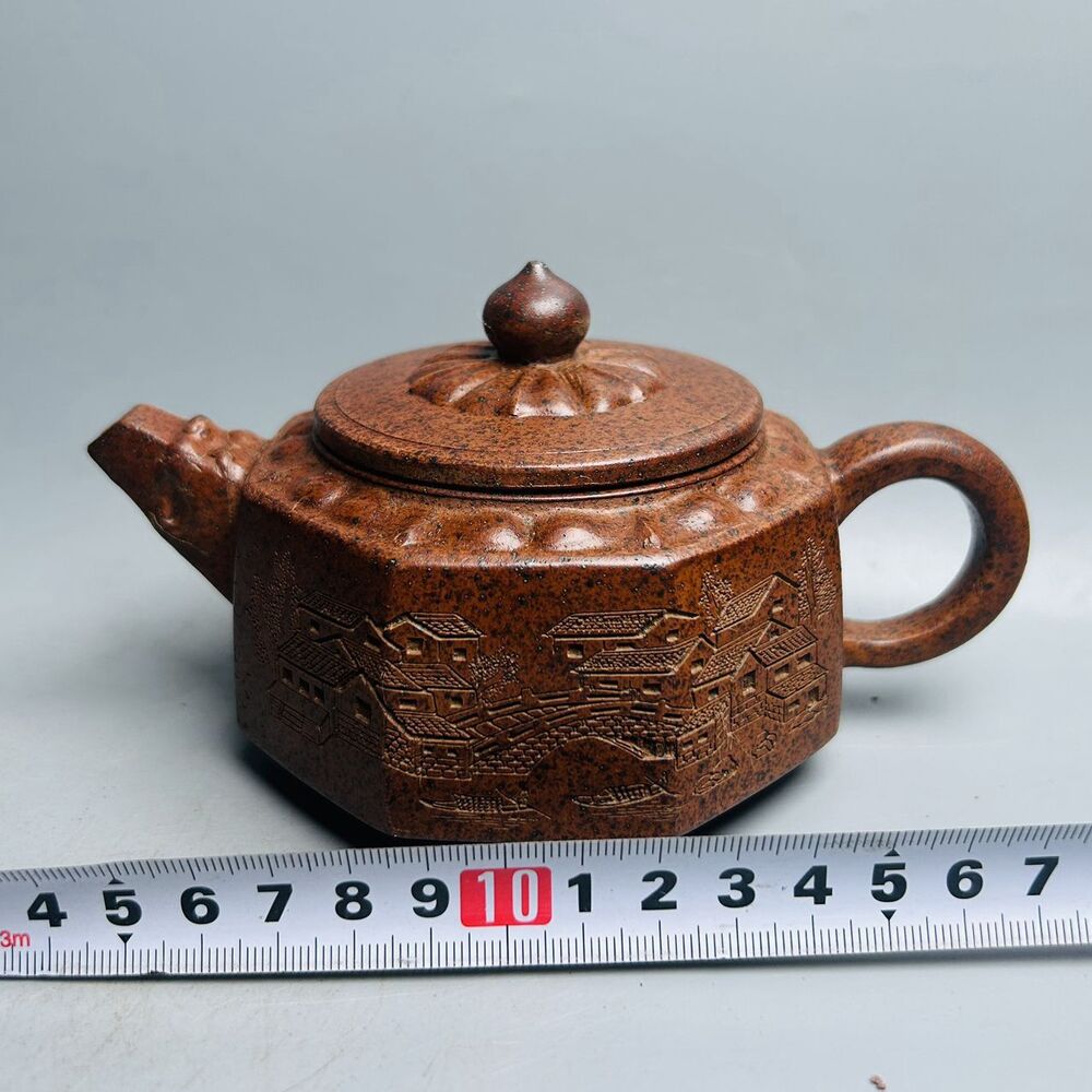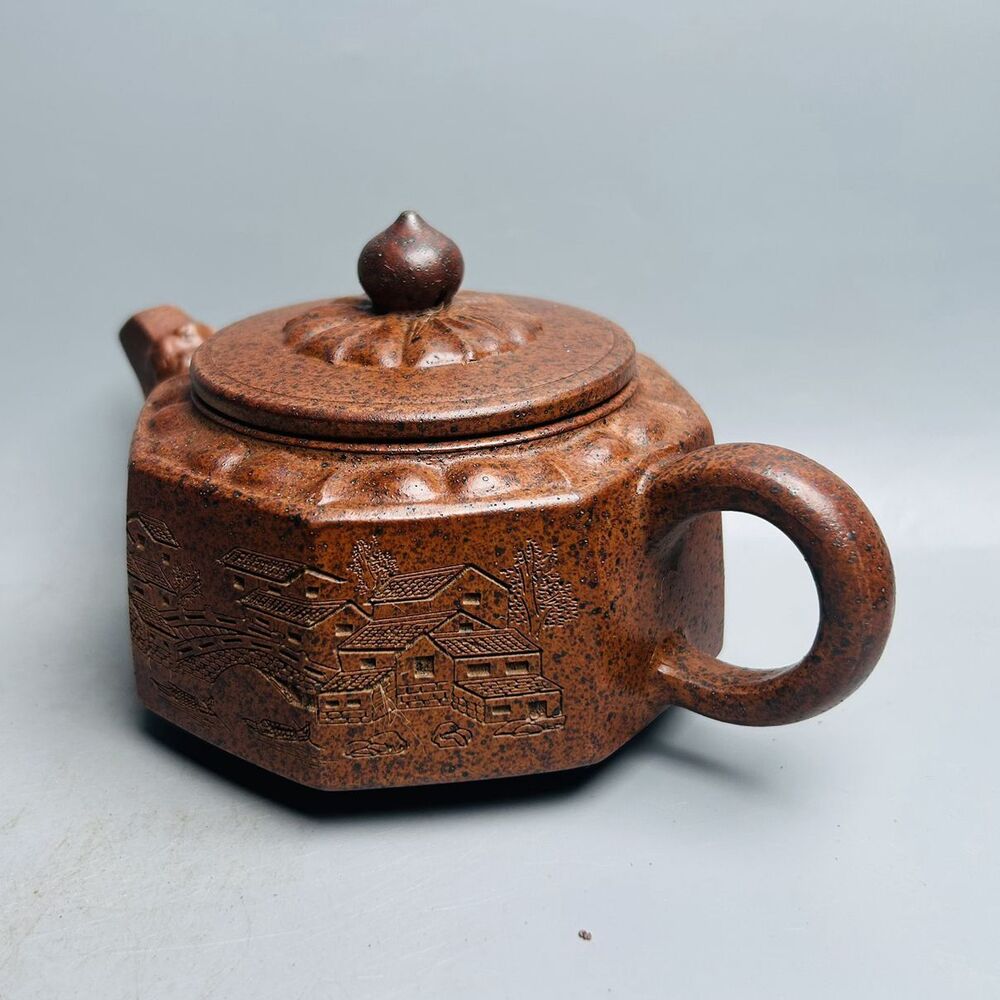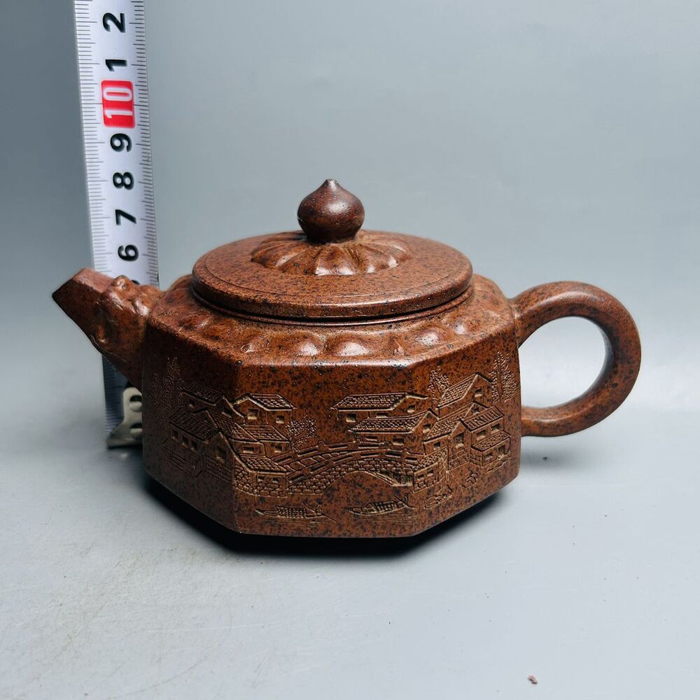 Vintage Chinese Yixing Purple Clay Teapot Zisha Ceremony Carving Collectible Art