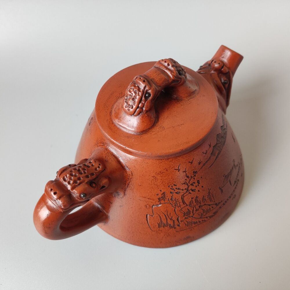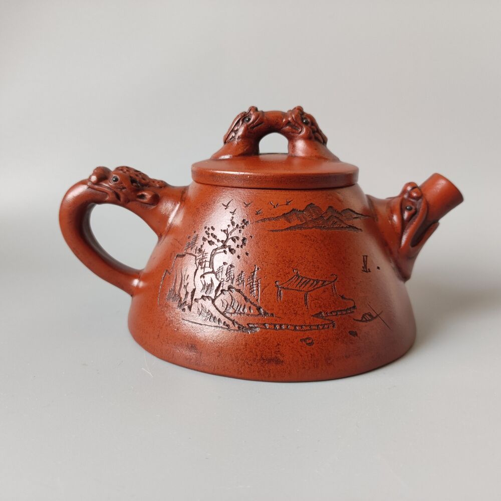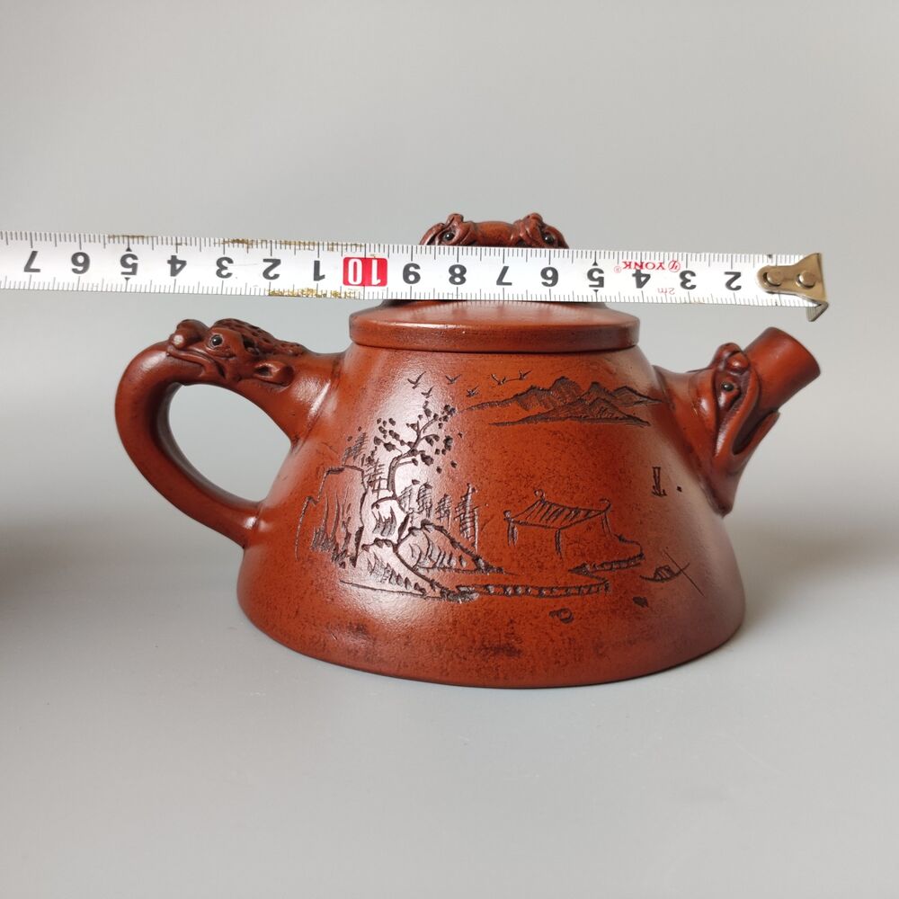 Vintage Chinese Yixing Purple Clay Teapot Zisha Ceremony Carving Collectible Art